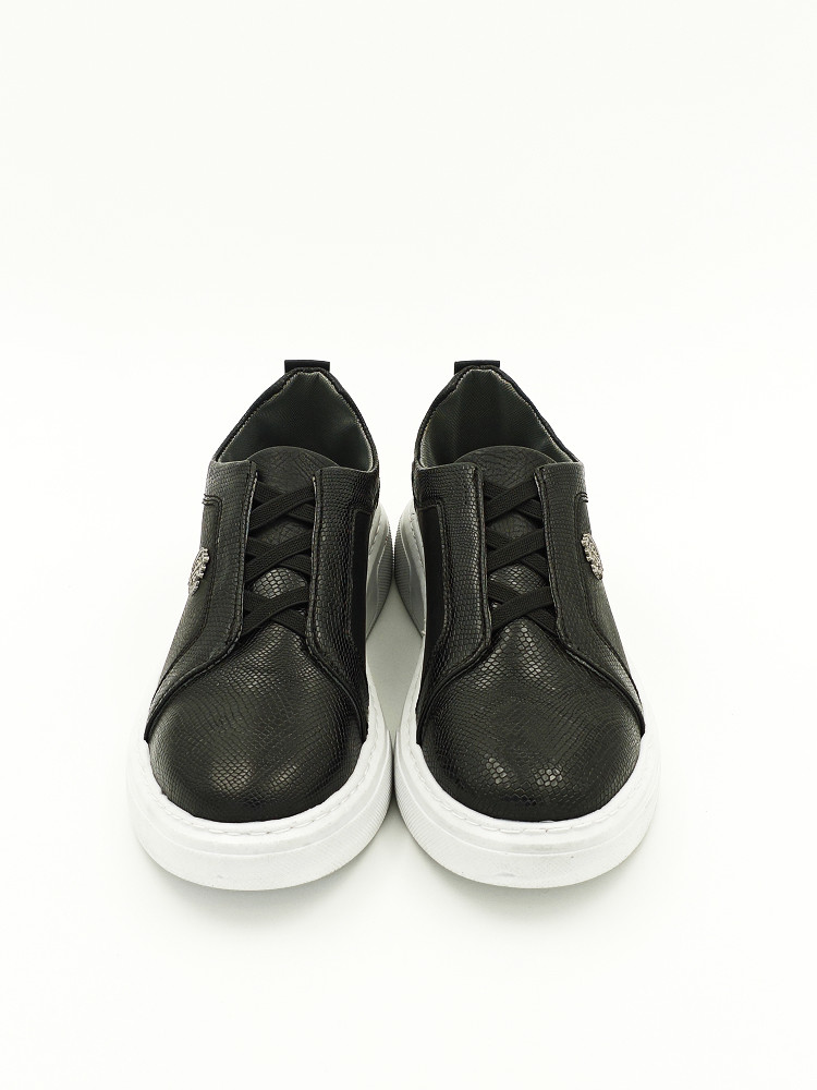 Черные кроссовки с текстурой под крокодила