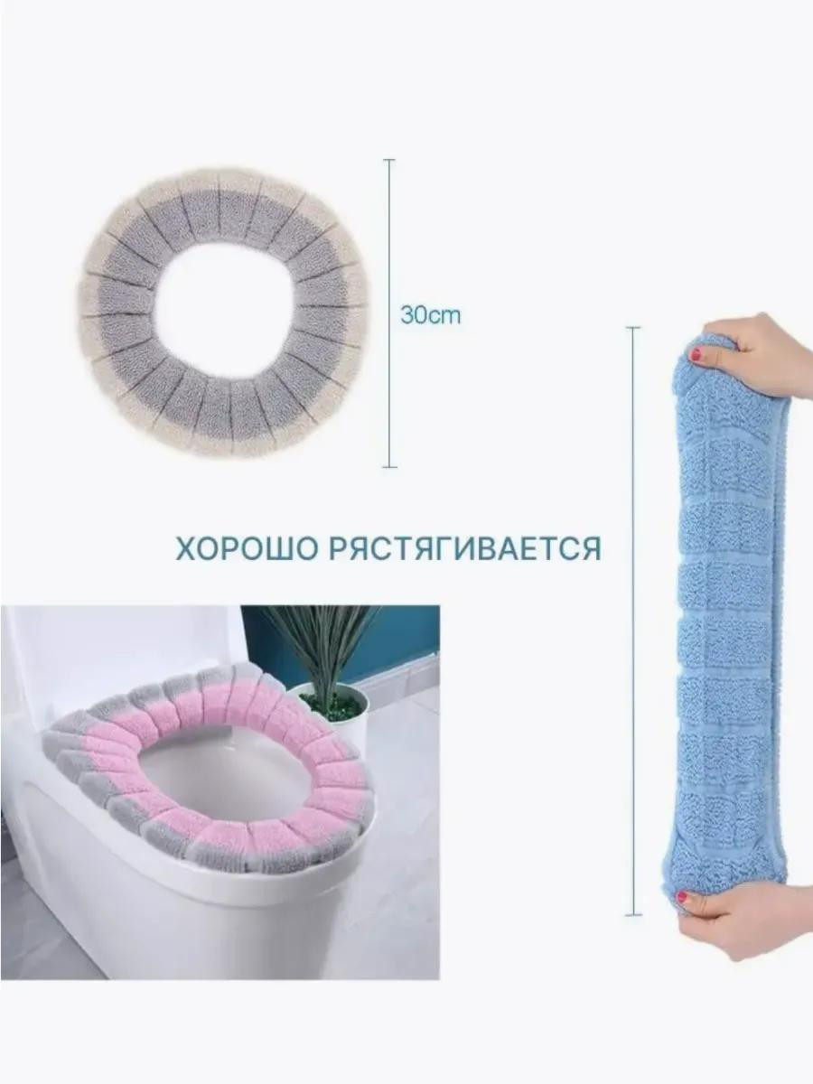 Мягкие сиденья для ободка унитаза. Мягкое покрытие для унитаза подходит практически ко всем размерам сидений для унитаза, благодаря эластичному материал. Материал изделия микрофибра.Тёплое сидение(накладка на стульчак) легко одеваются с помощь специальной трубки идущей в комплекте. Сам чехол сидит плотно на унитазе и не скользит. Можно стирать в стиральной машине (перед стиркой удаляется трубка, чтобы не сломать ее). Удобное решение, как для дочи так и для дома.