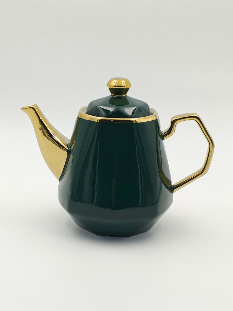 1. Чайник: Изысканный чайник с изогнутым носиком и элегантной ручкой, созданный для легкости наливания чая. Его просторный объем позволяет заваривать и подавать чай с изыском.