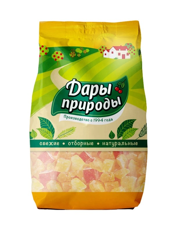 Для производства цукатов "Дары природы" используется смесь цукатов ананаса и папайи, выращенных в Тайланде.Цукаты делаются исключительно из спелых фруктов, что гарантирует их прекрасный вкус.Отличный продукт для готовки, выпечки, для чаепития с домашними. Состав: Кусочки плодов ананаса и папайи сушёные, сахар, консервант (Е220)