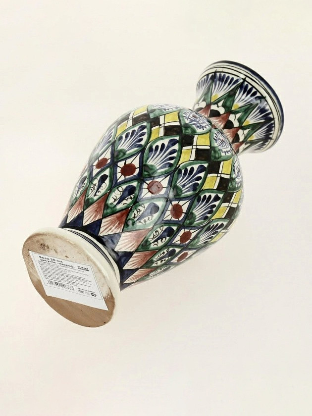 Эффектная ваза ручной работы, выполненная в традиционной технике Риштанской керамики, станет изюминкой любого интерьера. Богатая палитра, узнаваемый восточный орнамент и глянцевая глазурь создают уникальное сочетание эстетики и ремесленного мастерства.
