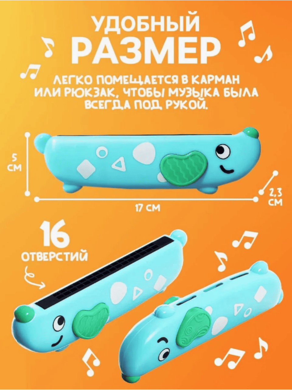 Игра на губной гармошке развивает дыхание, координацию и слуховое восприятие. Это отличный способ заинтересовать ребёнка музыкой без сложных инструментов и сложных нот. Такой инструмент станет чудесным подарком для юных исследователей звуков и ритмов!