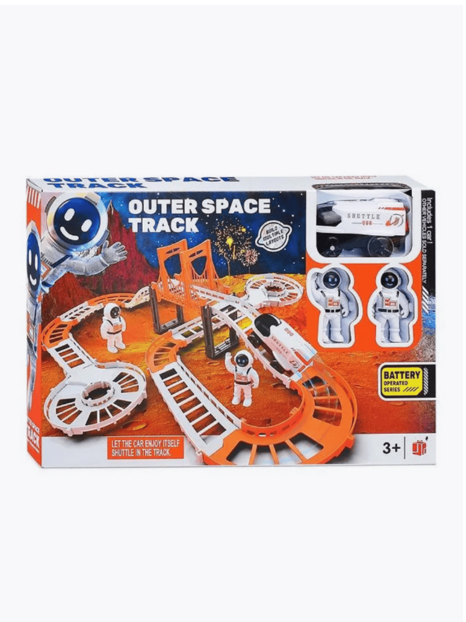 Трек Oubaoloon Космический, 31 элемент, в коробке (888 - 86). Количество деталей: 31. Размеры трассы: 60 х 52. 1 х 13. 1 см. В комплекте машинка с электрическим мотором (8. 5х4. 5х4. 5 см. ). Машина работает от 1 батарейки "АА" (не входит в комплект). Материал: пластик. Соответствует требованиям безопасности продукции. Для детей от 3 - х лет. Материал: Пластик, металл;