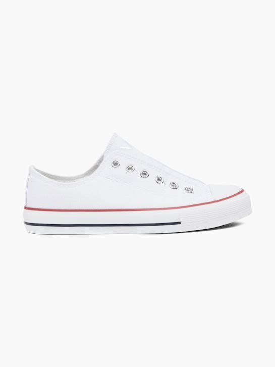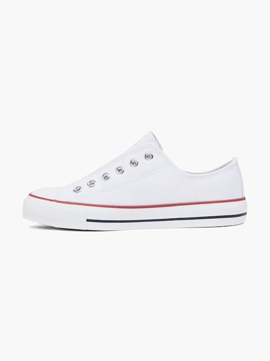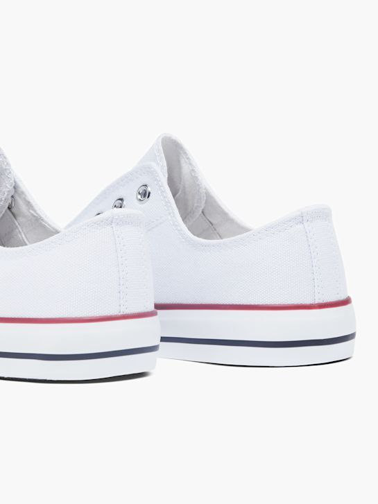 Классические белые кеды со шнурками, выполненные из прочного текстиля. Обладают универсальным дизайном с красно-синей полоской на подошве, что добавляет стильный акцент. Удобная резиновая подошва обеспечивает амортизацию и комфорт при ходьбе. Идеальный выбор для повседневной носки и активного образа жизни, легко сочетаются с различными стилями одежды.