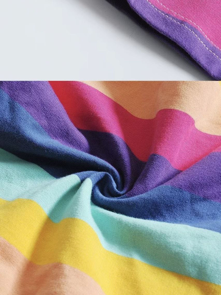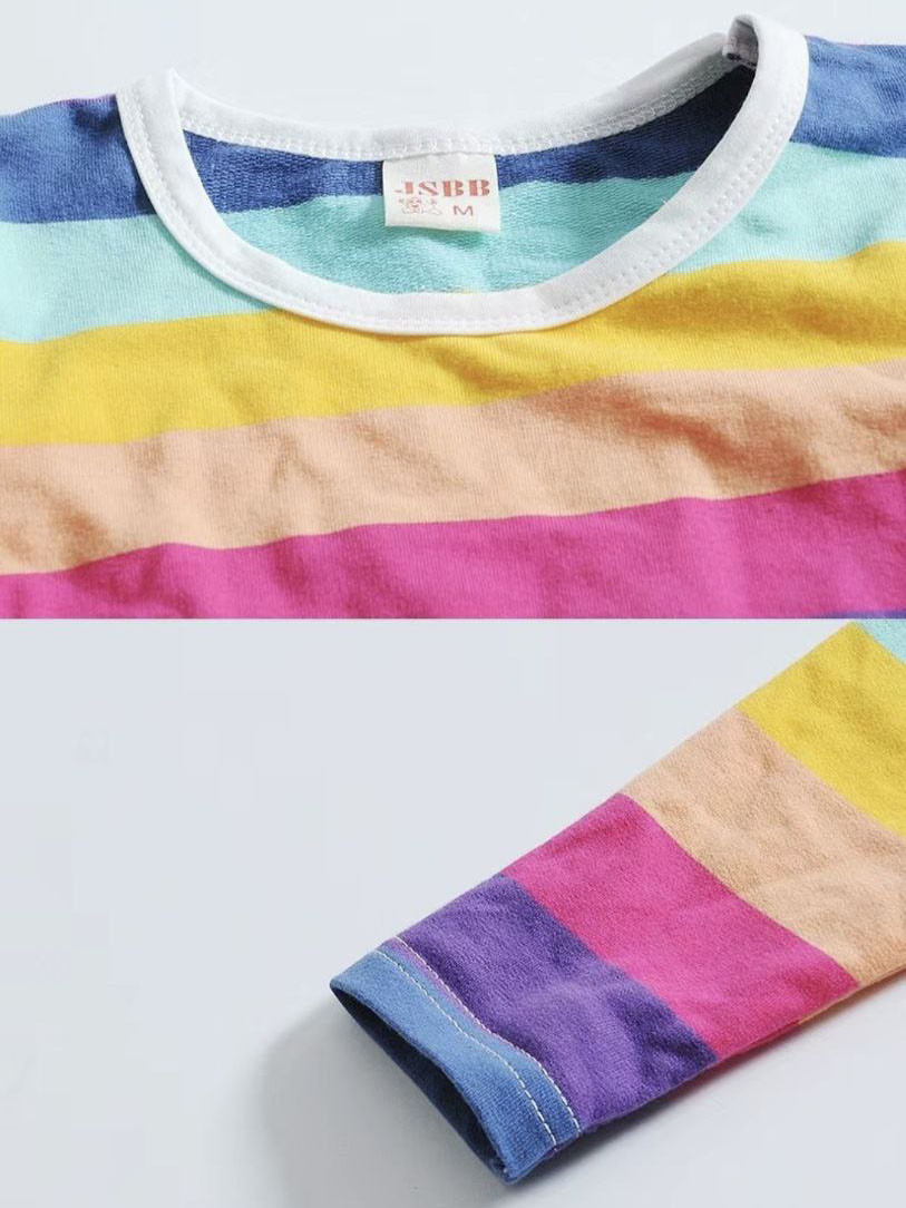Детский комплект: радужный лонгслив и розовые брюки-комбинезон