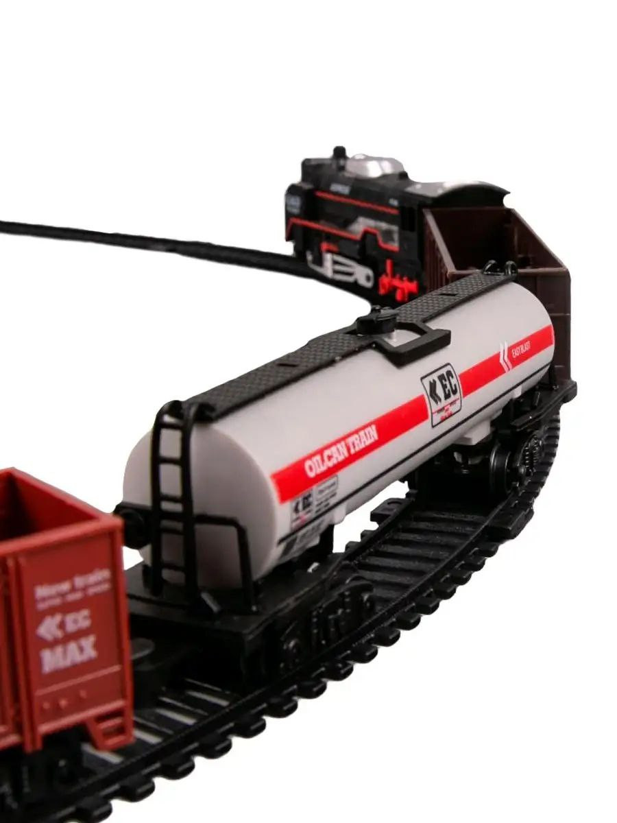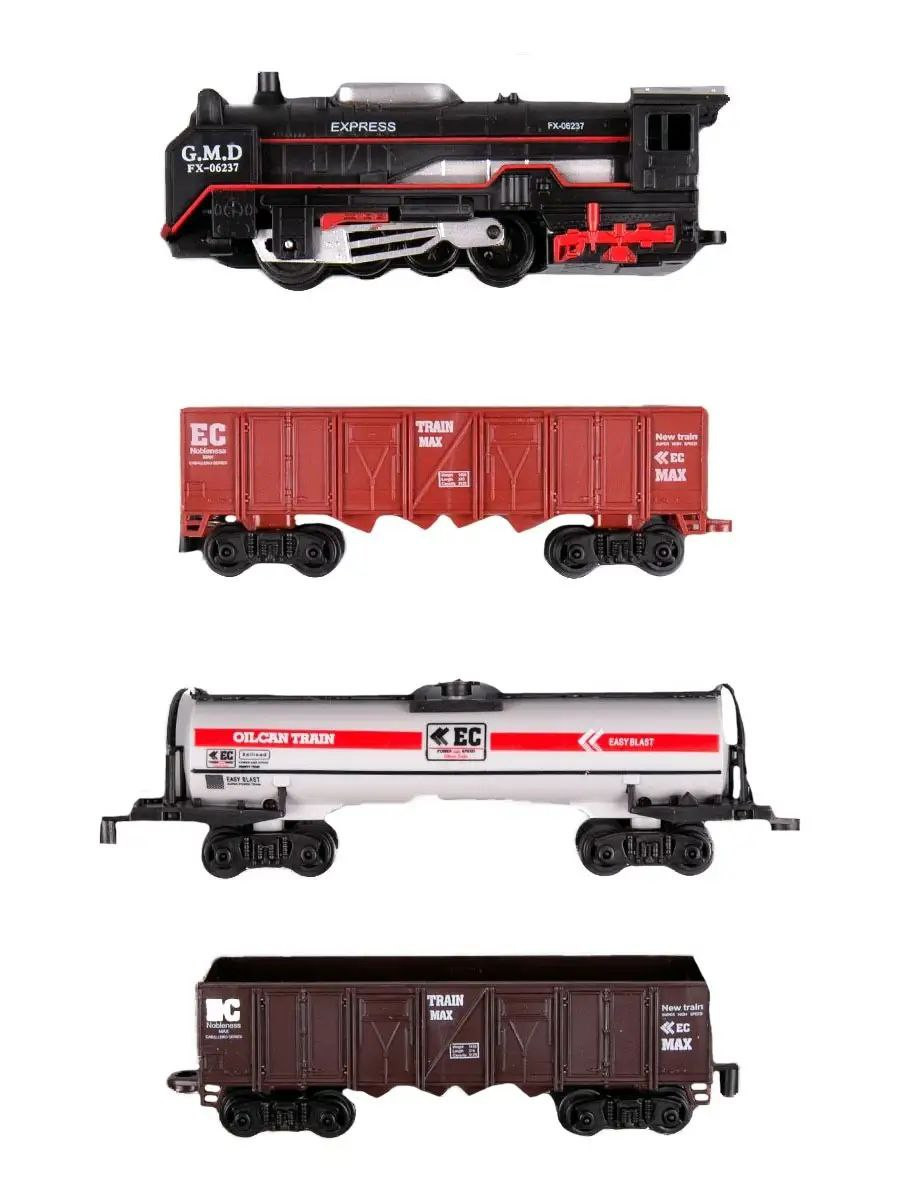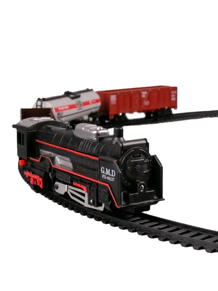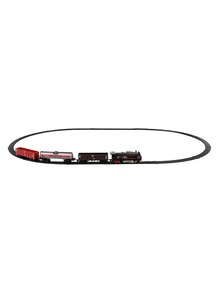 Железная дорога — это классика, которая не устаревает со временем. Она станет любимой игрушкой для Вашего малыша и самым незабываемым подарком! Игрушечный поезд – это отличный способ не только занять ребенка, но и развить его воображение, мелкую моторику и социальные навыки, а также это потрясающее развлечение, которое принесет ребенку (и не только) массу положительных эмоций. Играя с набором, ребенок сможет представлять себя водителем локомотива. Игрушка по-настоящему завораживает, ведь поезд выглядит совсем как настоящий. Самому построить железную дорогу и тут же запустить локомотив с составом — это ведь мечта всех ребятишек! В комплект входят рельсы для сборки железной дороги, локомотив, 3 вагончика. Железная дорога с лёгкостью разбирается и собирается, локомотив едет вперед, фонарь впереди подсвечивается. Железная дорога будет отличной идеей для подарка сыну или дочке, племяннику или внучке на День рождения, Новый год, 23 февраля, 8 марта или 1 сентября. Игрушка изготовлена из качественного пластика и соответствуют стандартам. Безопасна для детей.