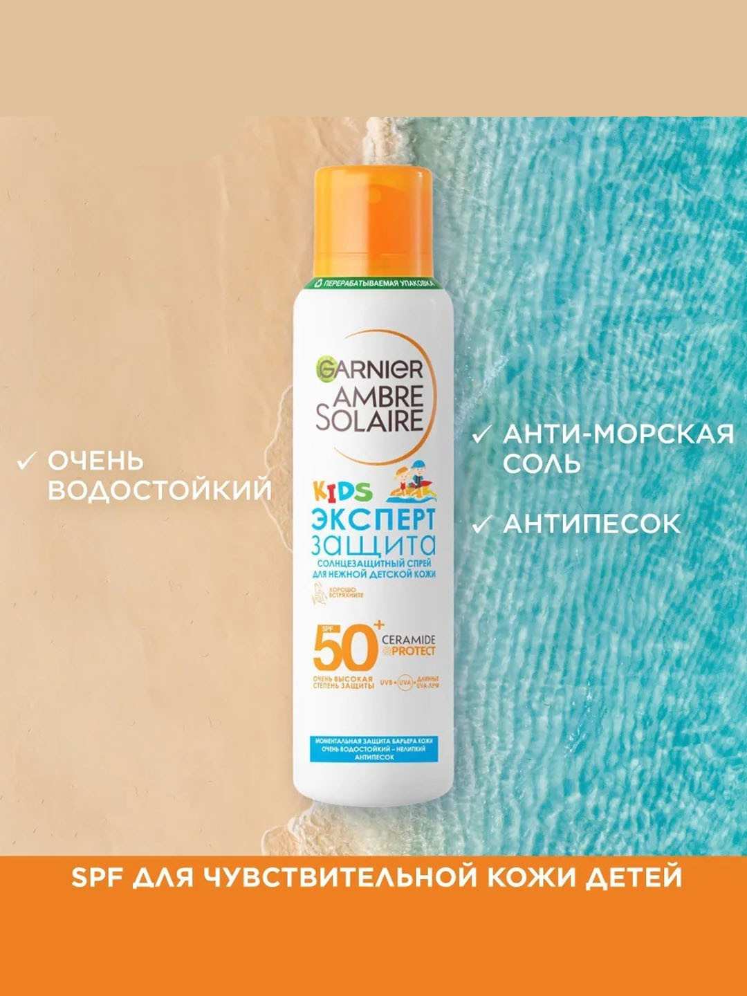 Сухой спрей Анти-песок Эксперт защита для детей SPF 50+. Абсолютно неощутим на коже, наносится из любого положения. Устойчив к песку, скажите "нет" неприятным ощущениям и раздражениям от песка, прилипшего на нежную детскую кожу.