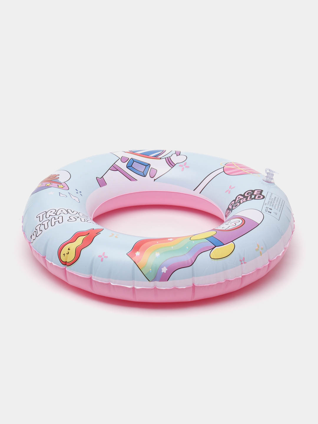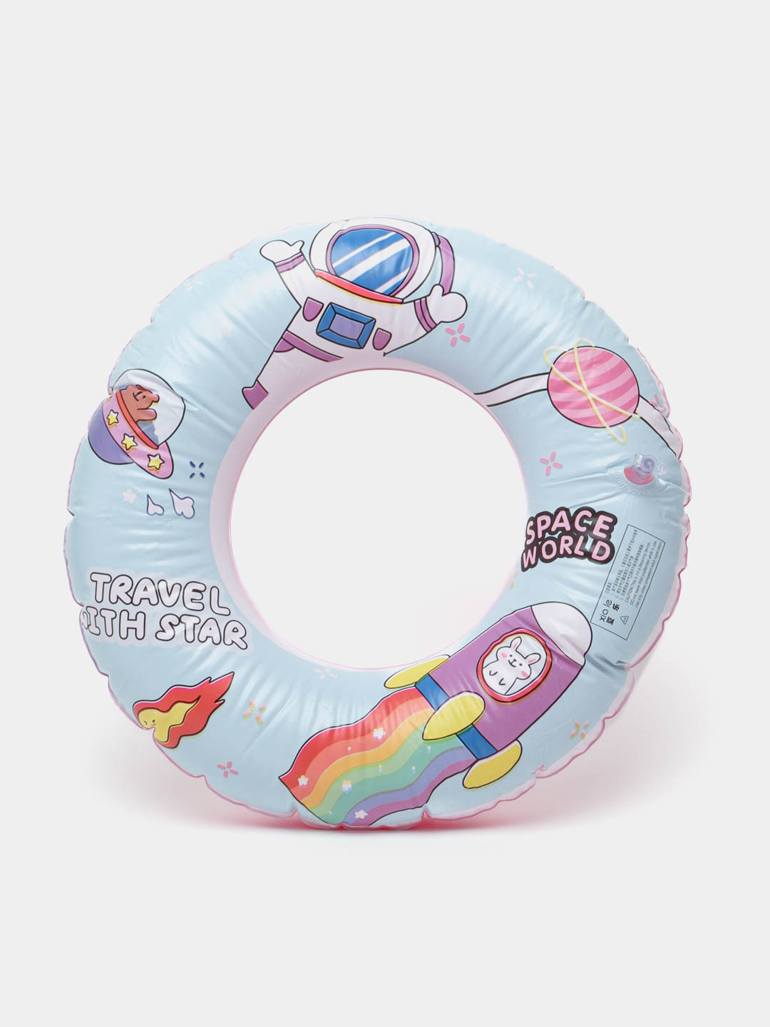 На круге — милые космические животные: зайчики, ракеты, планеты и звёзды, которые вдохновят ребёнка на весёлые водные приключения.