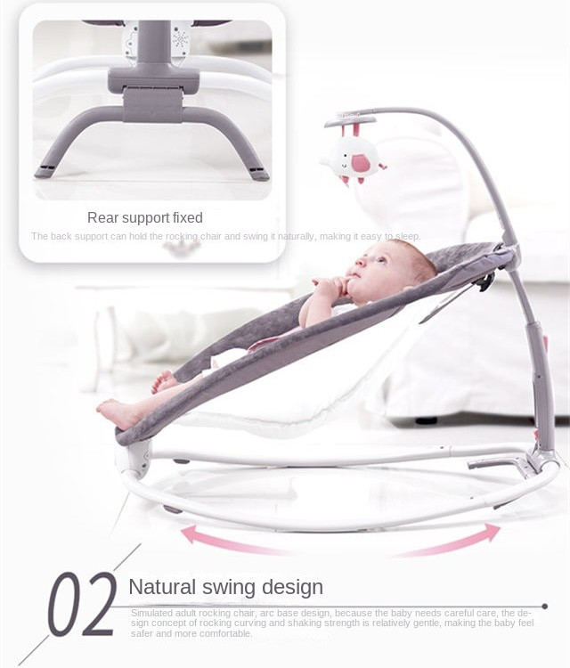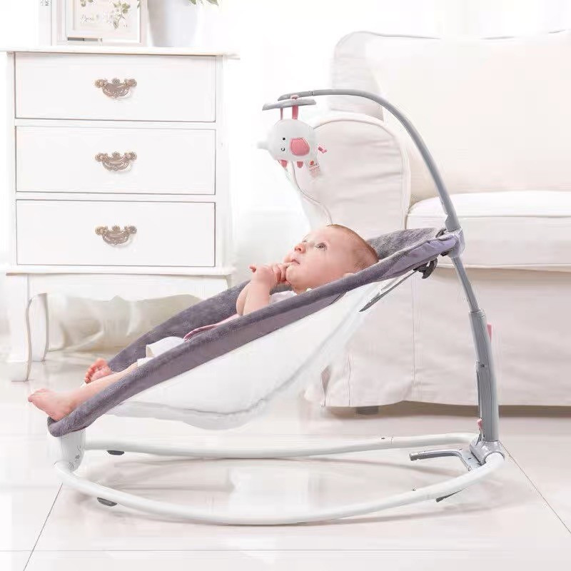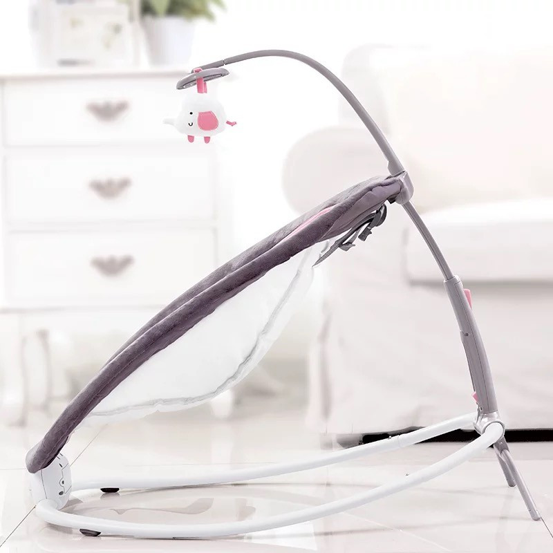 Полозы шезлонга могут мягко убаюкать или быстро успокоить разъяренного малыша, а динамик с несколькими привлекательными мелодиями и пара игрушечных подвесок, обязательно подарят ему хорошее настроение. Полозы также могут быть зафиксированы в статическом положении, а угол наклона люльки изменяется по высоте так, что кроху можно покормить, напоить из бутылочки.