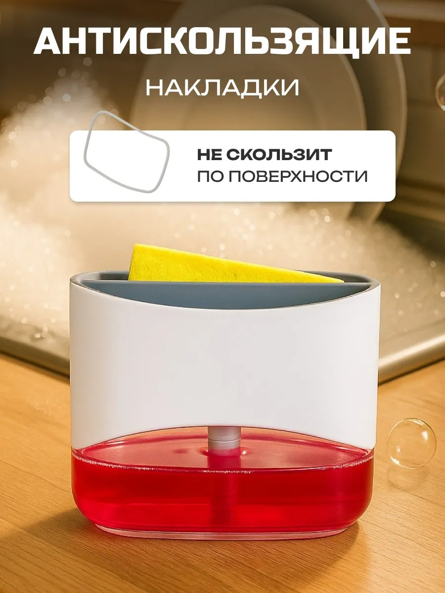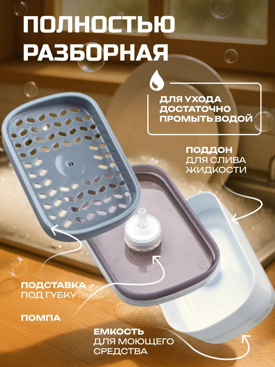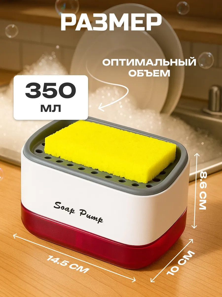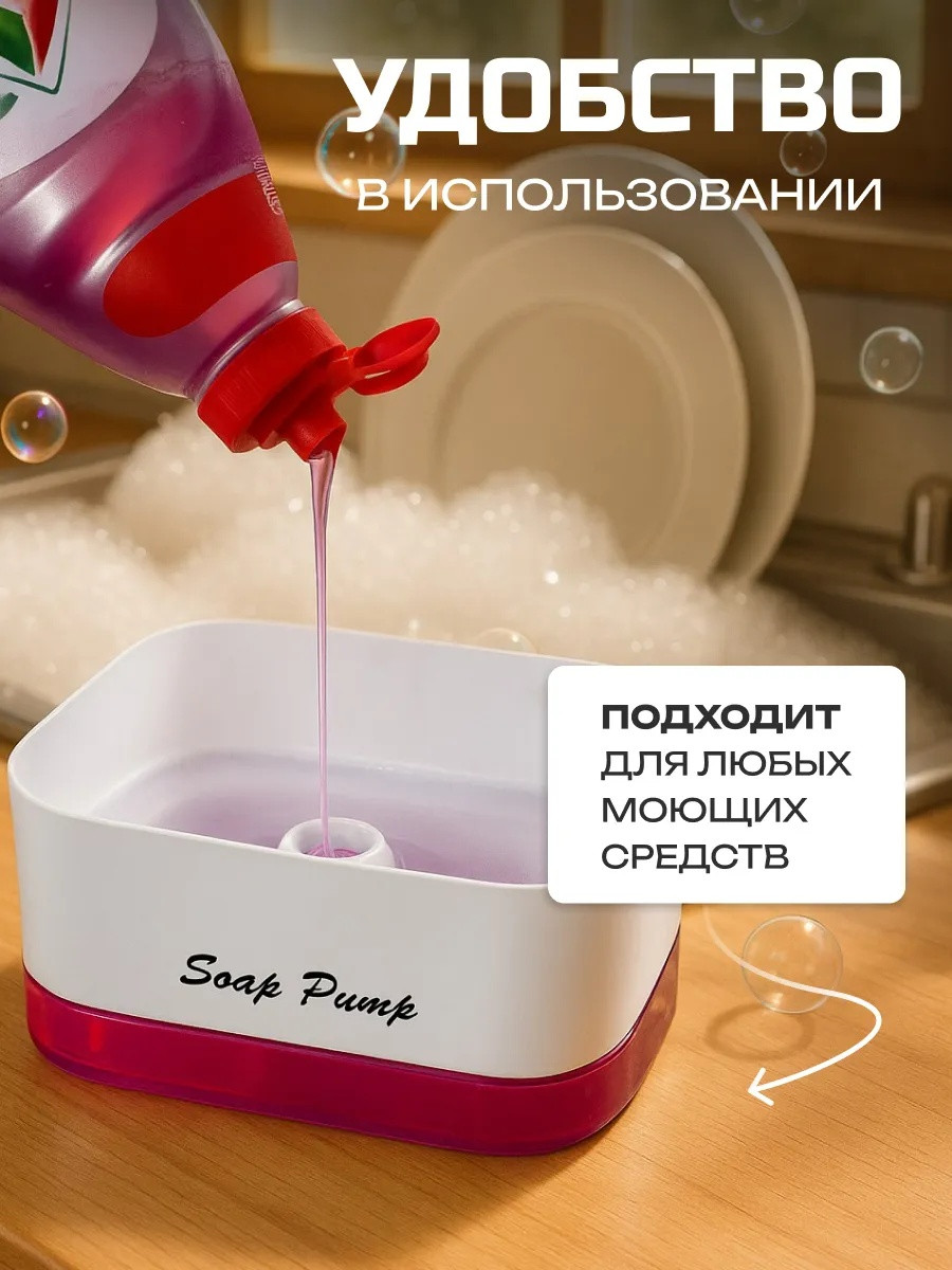 Кухонный диспансер -это умный дозатор для моющего средства с губкой в подарок. Диспенсер для моющего средства — идеальное решение для поддержания чистоты и порядка на кухне. Этот удобный диспенсер для мыла оснащен встроенным держателем для губки, что позволяет хранить губку и моющее средство в одном удобном месте. Сам держатель для губки изготовлен из прочных, высококачественных материалов, рассчитанных на то, чтобы выдерживать суровые условия ежедневного использования, поэтому вы можете быть уверены, что он прослужит долгие годы. Дозатор на кухню имеет простую и удобную конструкцию, что делает его идеальным для использования на любой кухне. Дозатор для моющего средства на кухню поможет вам избавиться от мыльных и водяных разводов раковины, сэкономить ваше средство для мытья посуды, сэкономить ваше время на мытье посуды, а так же поддерживать чистоту и красоту на вашей кухне! Очень удобная и нужная кухонная принадлежность, от которой вы будете довольны! Диспенсер для моющего средства на кухню — идеальное решение для тех, кто хочет содержать свою кухню в чистоте и порядке. Благодаря встроенному держателю для губок, удобному дизайну и стильному внешнему виду этот диспенсер станет незаменимым помощником на любой кухне. Дозатор для посуды поможет сэкономить время и усилия, сохраняя при этом чистоту на кухне. Автоматический для губки на кухню изготавливается из качественного пищевого пластика. Вся ваша кухонная утварь , очень нужная на кухне и каждой хозяйке для губок на раковину