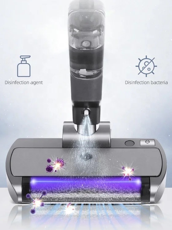 Многофункциональная электрошвабра нового поколения сочетает в себе три технологии очистки: влажную уборку, дезинфекцию и УФ-стерилизацию. Оснащена распылителем для моющего средства и ультрафиолетовым светом, который эффективно уничтожает бактерии и вирусы.
