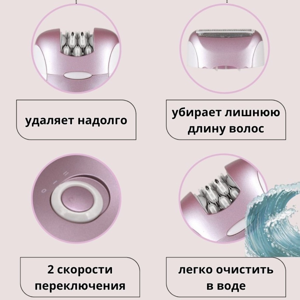 Наш эпилятор для удаления волос электрический работает от сети и от аккумулятора и оставляет после себя идеально гладкую кожу. Мощность позволяет ему эффективно захватывать волоски и не перегреваться во время работы. Благодаря маленьким размерам, триммер женский приятно держать в руке и занимает мало места в чемодане.
