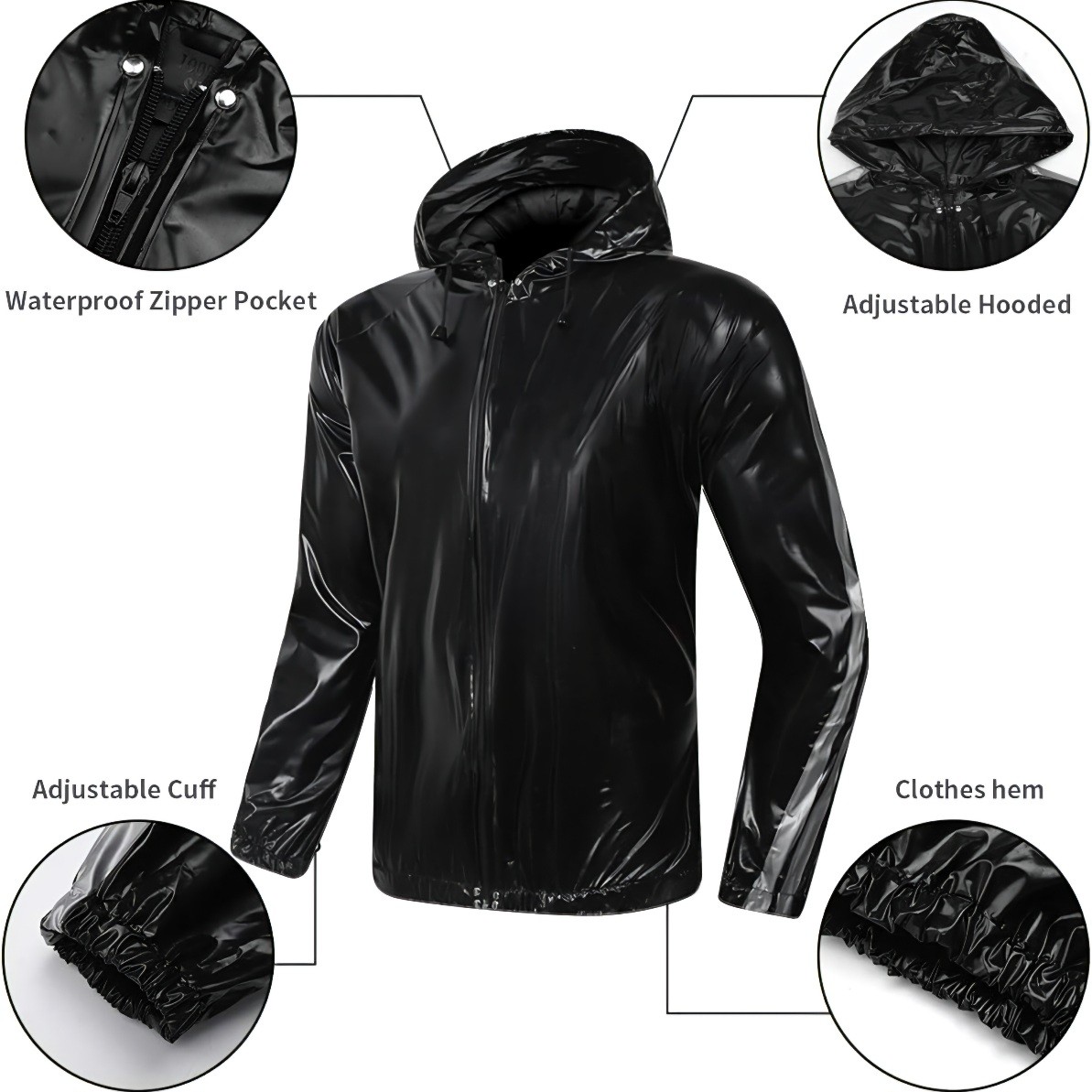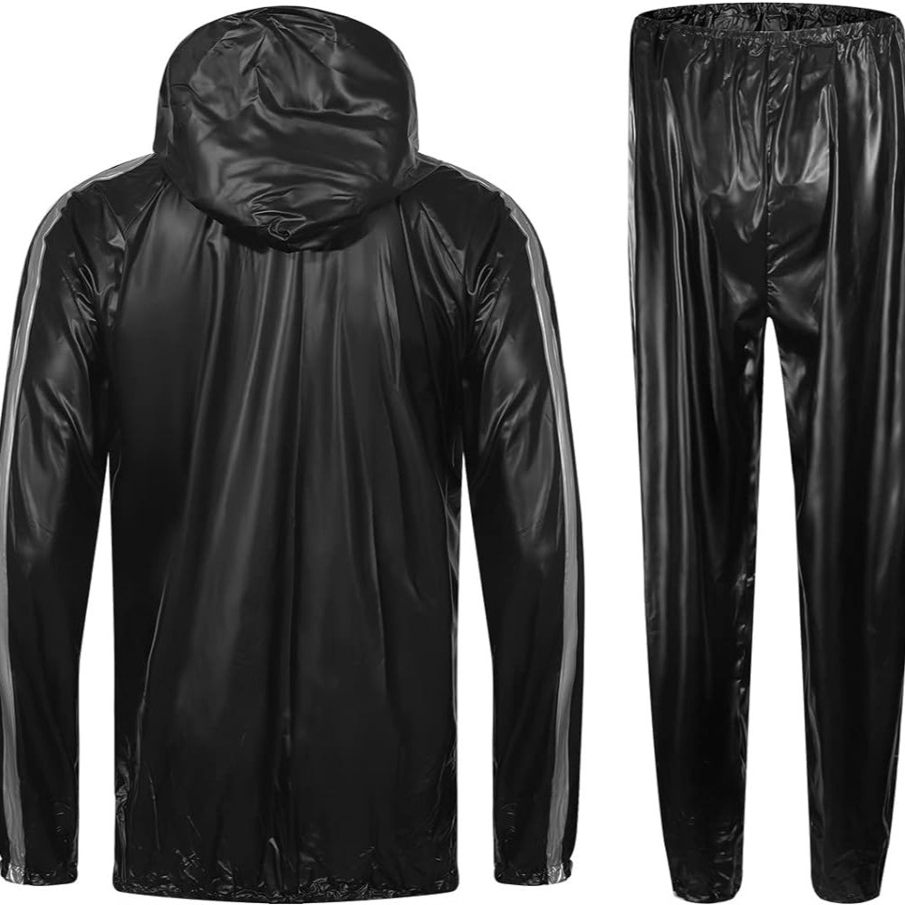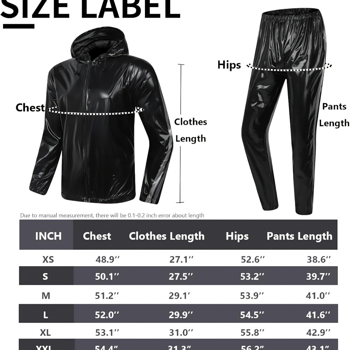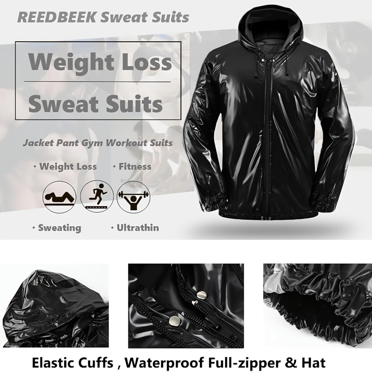 Костюм состоит из штанов и куртки, которые имеют свободный покрой. Для их изготовления используется высококачественный полиэстер (поливинилхлорид), отличающийся прочностью на разрыв и износоустойчивостью. Для максимальной сохранности тепла тела и, собственно, создания эффекта сауны все открытые части костюма – манжеты, горловина, штанины и пояс, снабжены резинкой. Благодаря этому тело спортсмена испытывает тепловое воздействие, потеет и усиленно теряет калории. При этом стоит отметить, что поддержание костюма в чистоте не составляет ни малейших проблем – можно пользоваться машинной стиркой в обычном режиме, а сохнет он невероятно быстро.