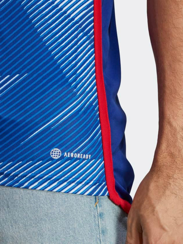 Почувствуй дух самураев и поддержи команду Японии с этой эксклюзивной игровой футболкой от Adidas! Дизайн вдохновлен традиционным японским искусством, а яркие синие оттенки с графическими узорами символизируют скорость и силу команды.