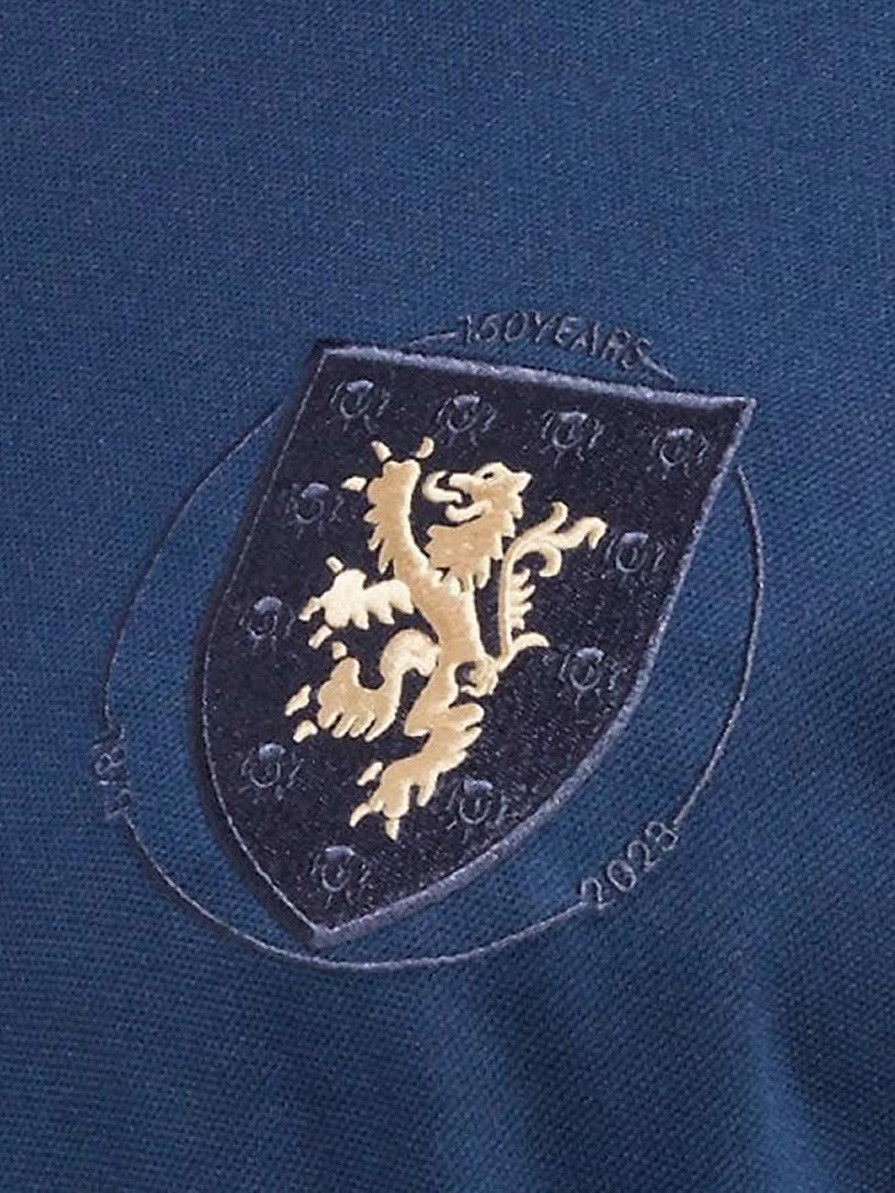 - Вышитый герб сборной Шотландии с золотым львом в честь исторического юбилея.