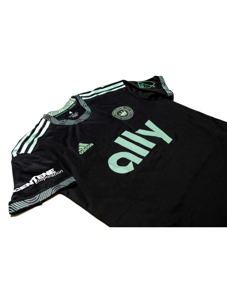 Официальная гостевая футболка клуба Charlotte FC от Adidas, созданная для дебютного сезона команды в MLS. Элегантный черный дизайн с контрастными мятными деталями делает эту форму стильной и современной.