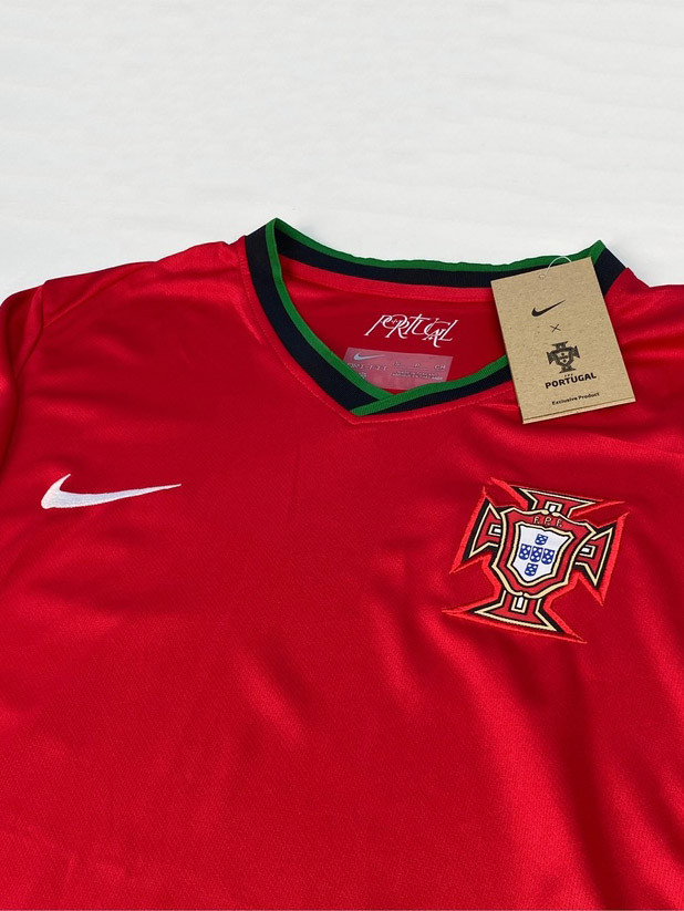 Официальная домашняя футболка сборной Португалии на 2024 год от Nike. Современный дизайн с отсылкой к классическим элементам португальской футбольной истории.