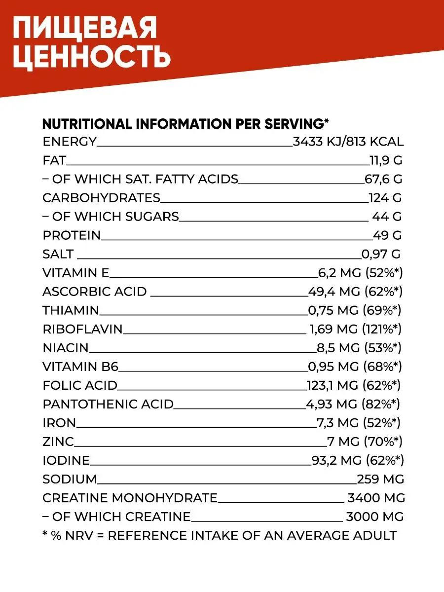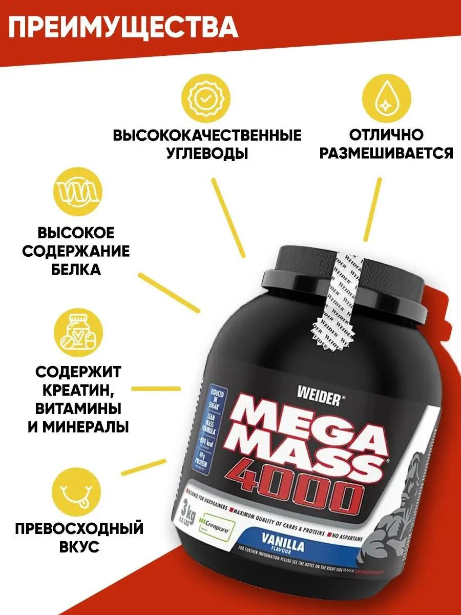 Гейнер Weider Mega Mass 4000 3000 гр со вкусом ванили – источник энергии для спортсменов, так как энергетическая ценность состава одной упаковки равна 355 ккал. Биологическая добавка содержит оптимальное количество белков (23 г), аминокислоты аргинин, аланин, трептофан, глицин, тирозин, лейцин, метионин, углеводы (61 г), минерально-витаминный комплекс (железо, медь, кальций, фосфор, калий, цинк, марганец, витамины А, В, Е, С, D) и незначительное количество жиров (1,6 г). Компоненты изготовлены из натуральных веществ, полезных для здоровья человека. При употреблении смеси достигается такой эффект: пополняются запасы энергии после повышенных физических нагрузок, тренировок; происходит наращивание мышечной ткани; улучшается функционирование сердечно-сосудистой, нервной и иммунной систем; разгружается желудочно-кишечный тракт. Упаковка рассчитана на 34 порции. Хранить открытую упаковку рекомендуется в холодильнике.