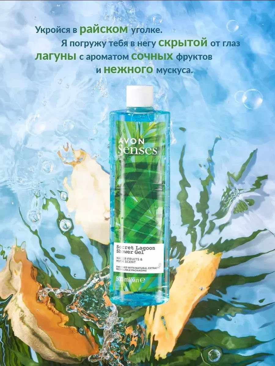 Погрузитесь в атмосферу покоя и свежести с гелем для душа Avon Senses Secret Lagoon. Его чарующий аромат сочных фруктов и нежного мускуса переносит вас в укромный уголок природы — прямо под душем. Формула с натуральными экстрактами деликатно очищает кожу, даря ощущение свежести на весь день.