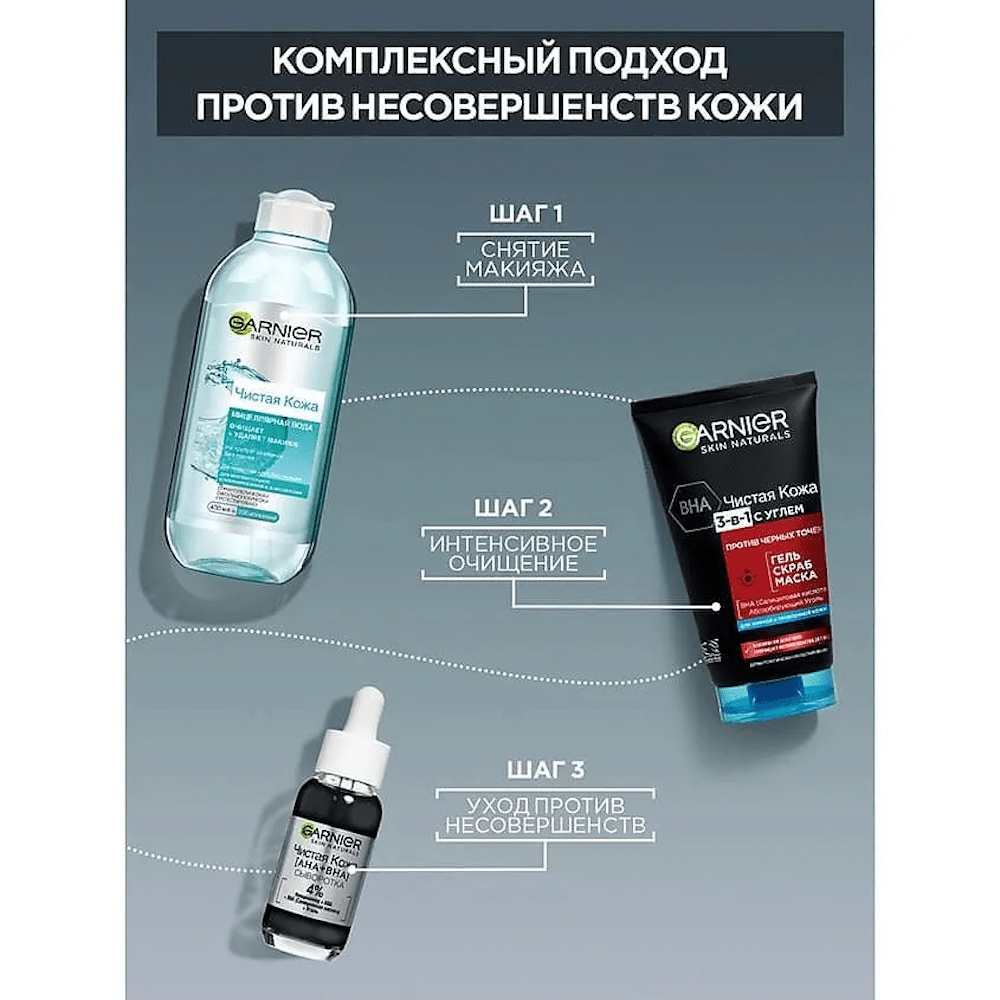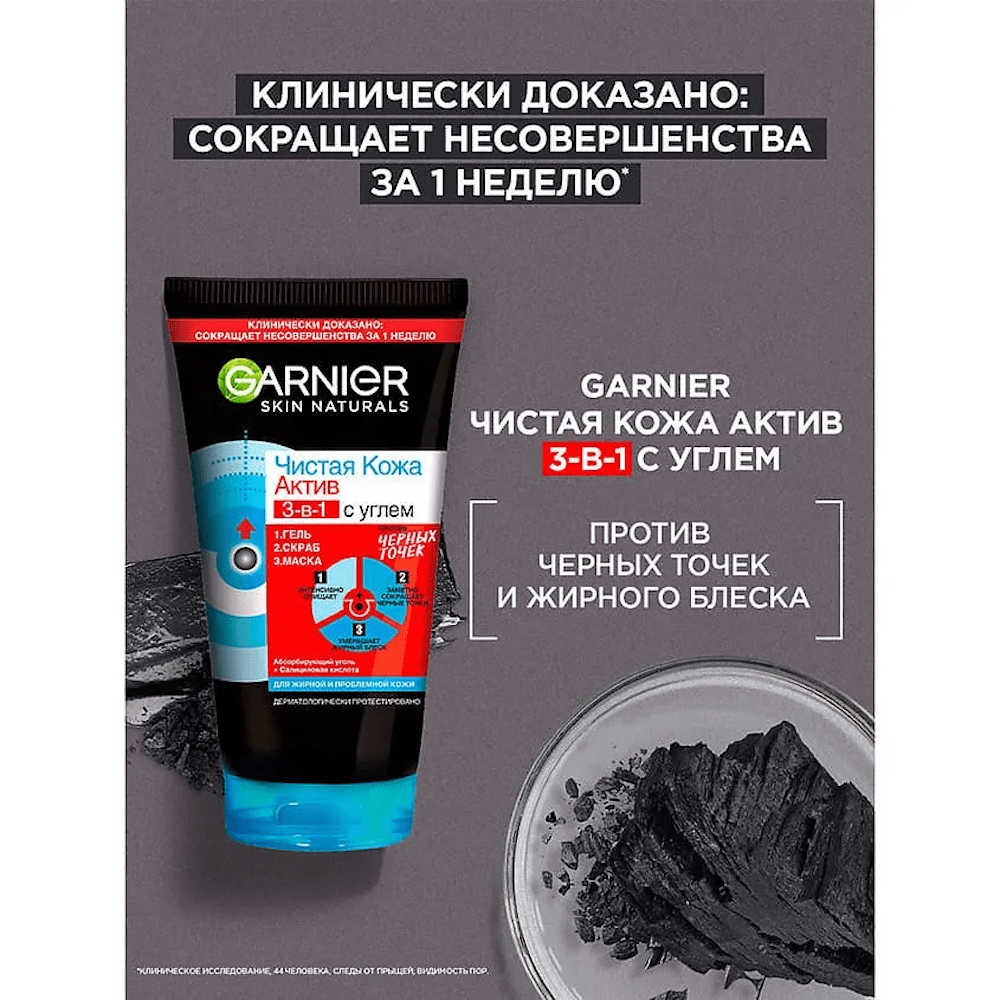 Гель + Скраб + Маска 3-в-1 GARNIER "Чистая Кожа Актив", от черных точек, для жирной кожи