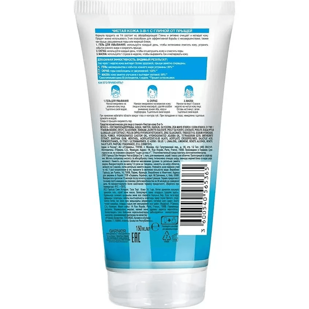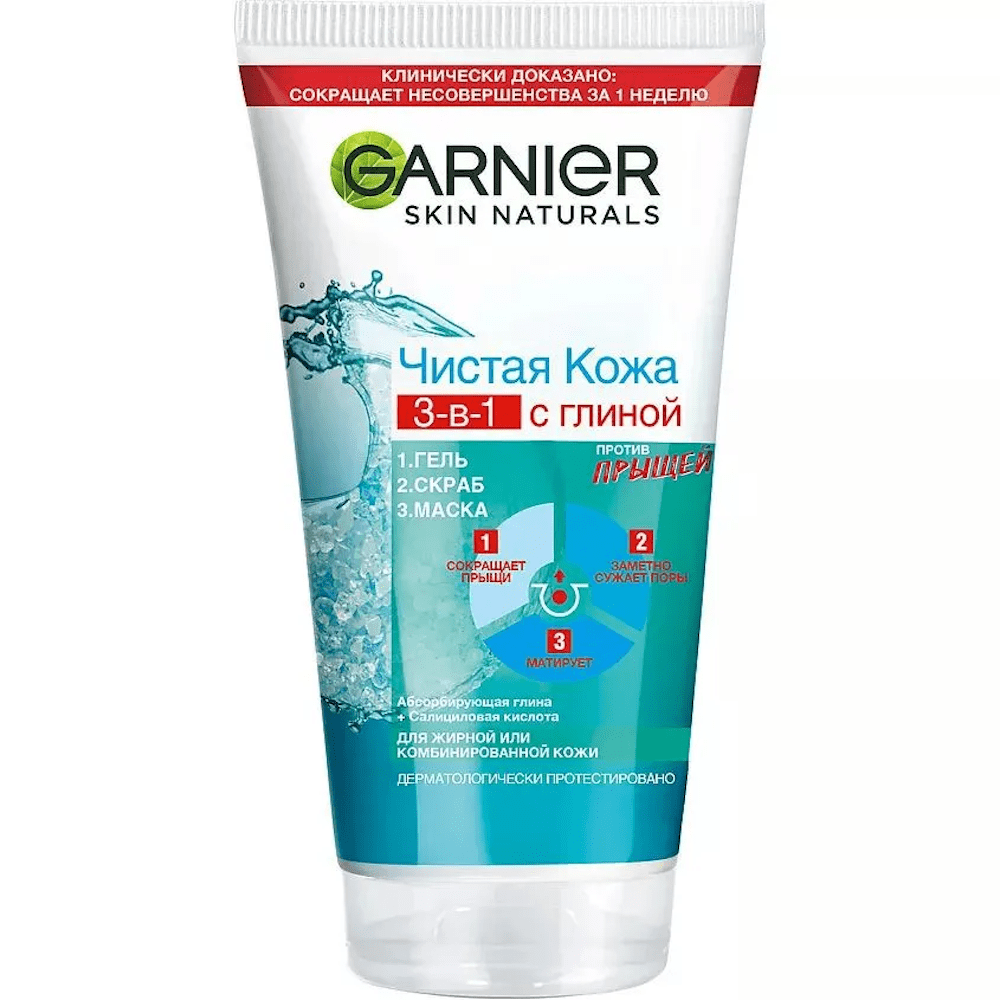 3-в-1 - это новый подход для борьбы против прыщей, черных точек и жирного блеска. В отличие от других средств он позволяет сочетать в одном флаконе Гель для умывания, Скраб и Маску для максимальной эффективности: 1. Гель для умывания: благодаря содержанию цинка, который регулирует выработку кожного жира, и экстракту смитсонита, он интенсивно очищает кожу и избавляет её от загрязнений. 2. Скраб: благодаря содержанию частичек пемзы, натурально очищающего компонента, удаляет ороговевшие клетки кожи и очищает поры. 3. Маска: благодаря содержанию белой глины, известной своей способностью успокаивать кожу и сужать поры, матирует и выравнивает цвет лица.