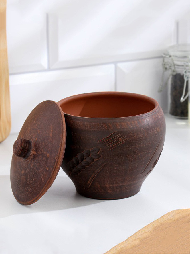 Керамический горшок с крышкой, предназначен для приготовления и подачи традиционного жаркого, тушёных блюд и запеканок. Эстетичный узор в виде колоса дополняет деревенский стиль. Обеспечивает равномерный нагрев и сохранение тепла.