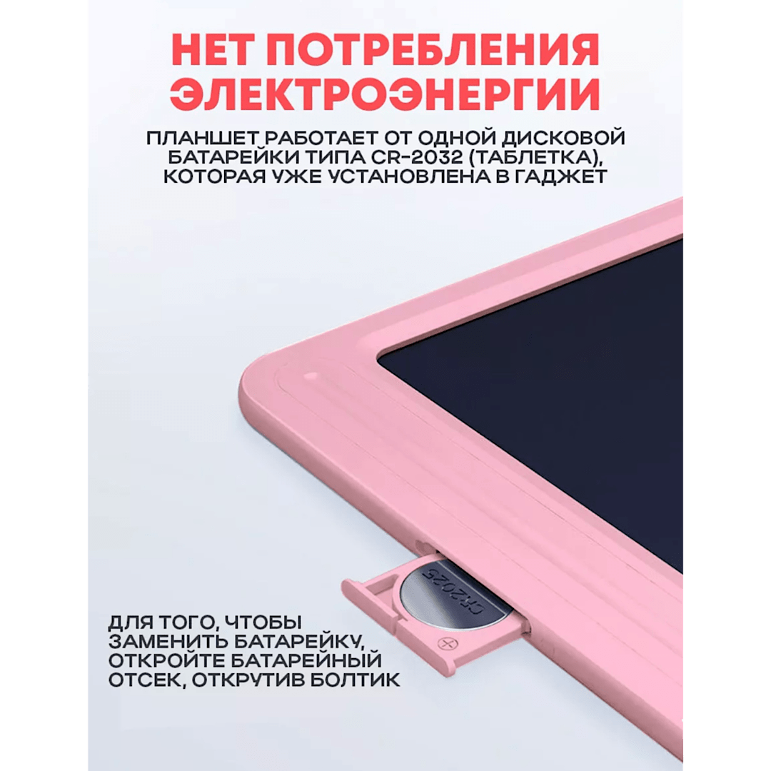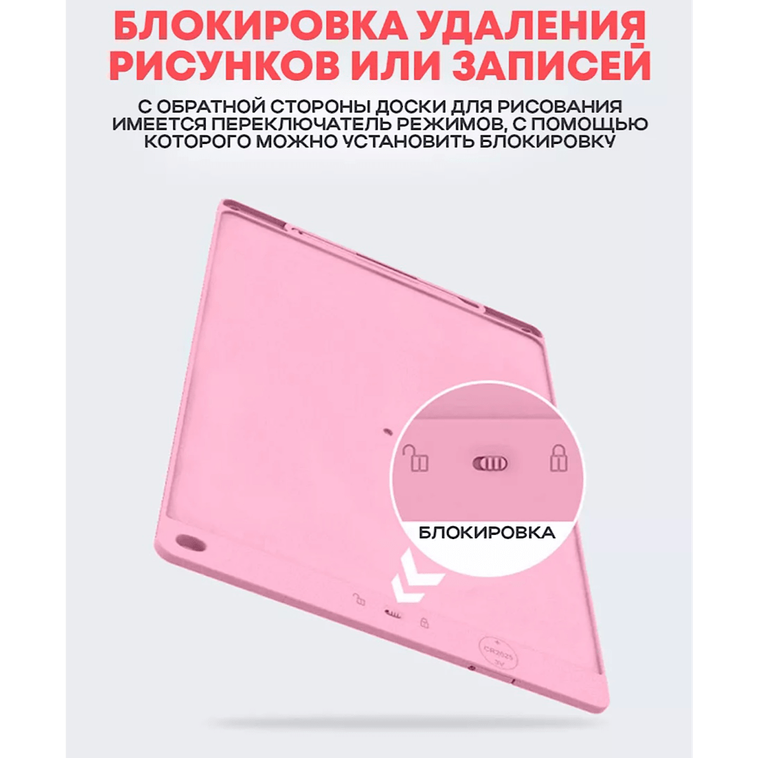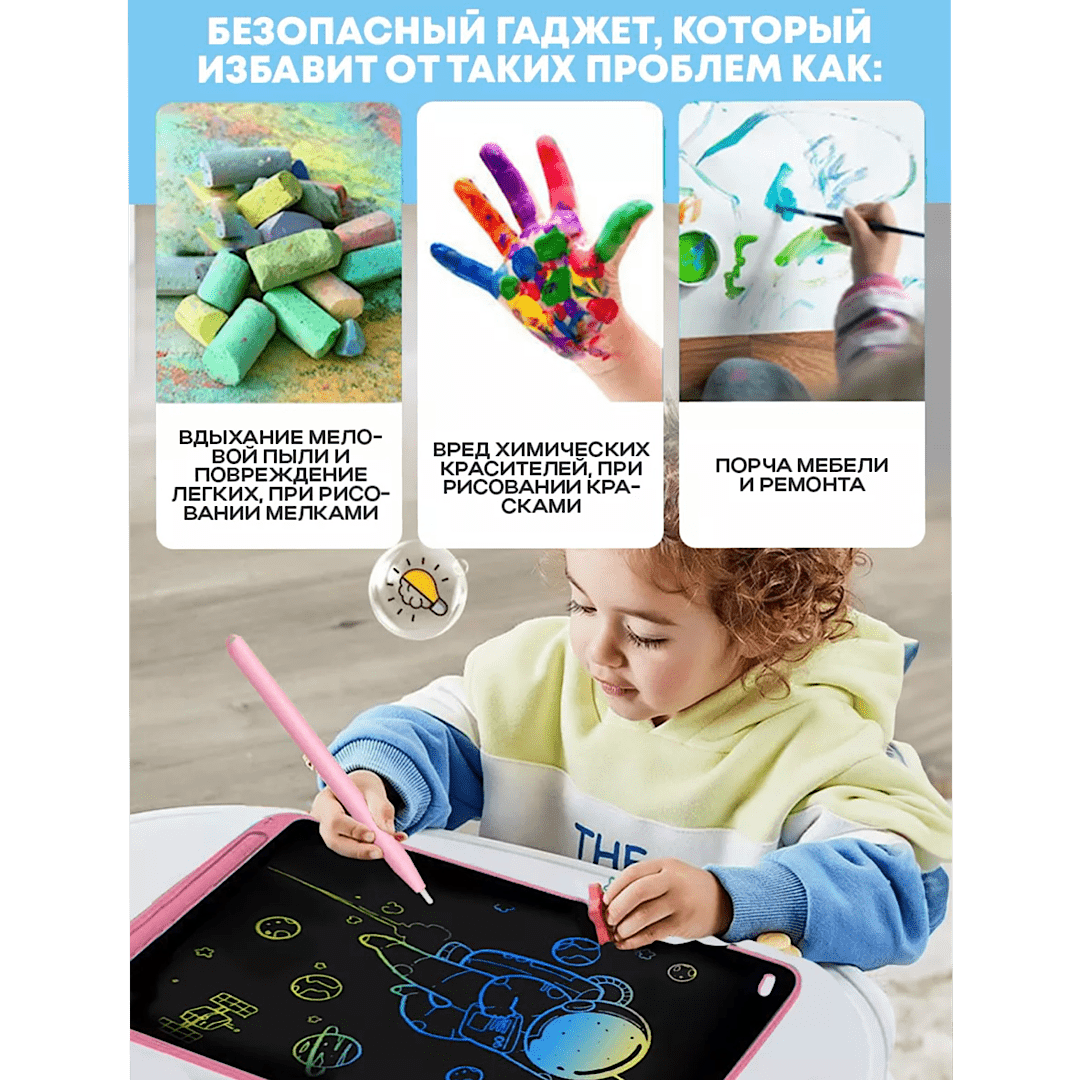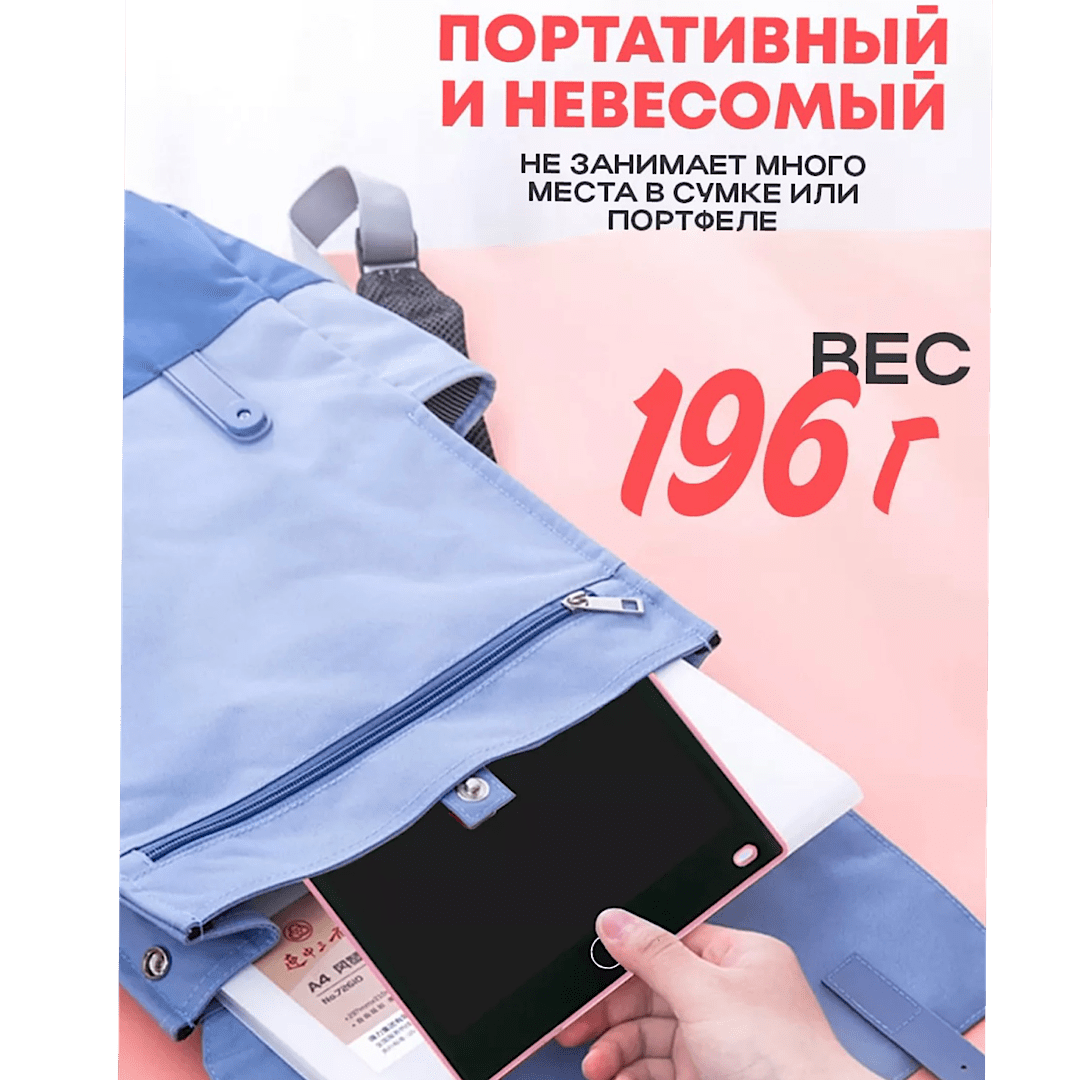 Графический планшет для заметок и рисования LCD Writing Tablet 12 дюймов подойдет как детям так и взрослым. Рисовать и писать можно где угодно, так как планшету не требуется подключение к сети или компьютеру. Планшет для рисования, это прекрасный инструмент как для тренировки, так и для создания настоящих шедевров. Всегда включенный экран, расходует энергию только на стирание - пишите, рисуйте, медитируйте, оставляйте заметки без ограничений! Экран имеет компактные размеры и легкий вес, его можно всегда взять с собой куда бы вы не пошли. Удобная альтернатива альбомам, блокнотам, липким заметкам и другим средствам для записей и рисования. Незаменим для малышей, которые только учатся рисовать, так как сбережёт ваше время и деньги на замену раскрашенных стен и мебели. А главное, не наносит вред зрению, безопасен в применении, развивает мелкую моторику, творчество и мышление, экономит время и деньги.