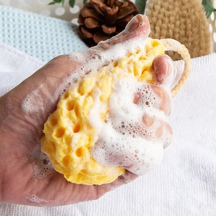 Подарите своей коже нежность! Наш массажный спонж из натуральных материалов бережно отшелушивает омертвевшие клетки, улучшает кровообращение и делает кожу гладкой и сияющей. Структура в виде сот обеспечивает мягкий массажный эффект.