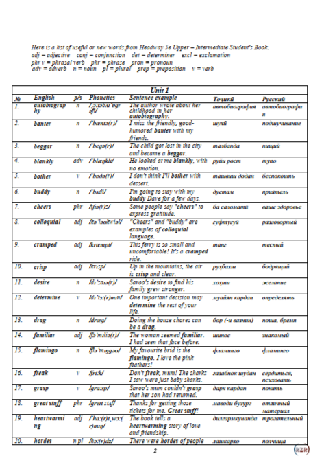 "Headway 5th Edition Intermediate Wordlist" — это полезный словарь к учебнику Headway Intermediate, который включает в себя список новых и часто используемых слов с примерами предложений.
