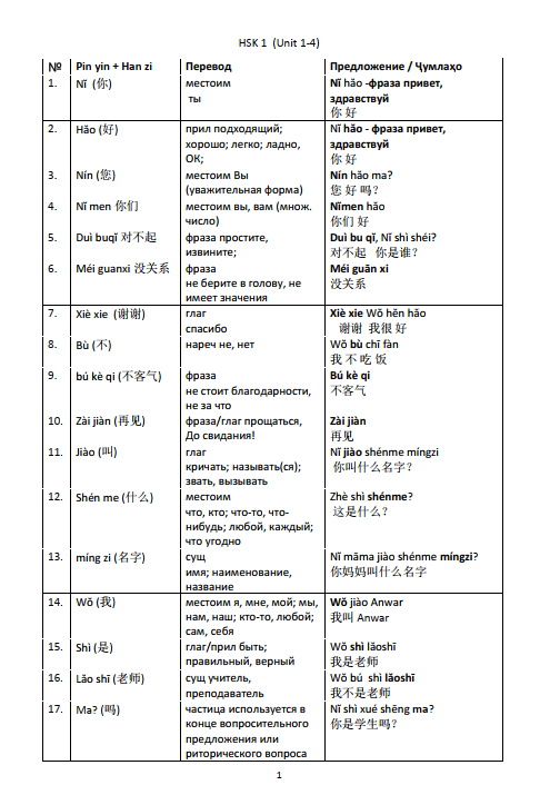 HSK 1 луғат