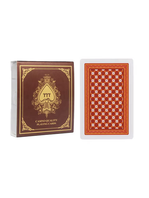 Погрузитесь в мир азарта и элегантности с этой роскошной колодой игральных карт. Упаковка выполнена в классическом коричнево-золотом дизайне, подчёркивающем её премиальное качество. В центре лицевой стороны коробки изображён изысканный символ пики с тремя семёрками – знаком удачи и успеха. Внутри вас ждут высококачественные карты казино-уровня, обеспечивающие идеальную гладкость и комфорт при игре.