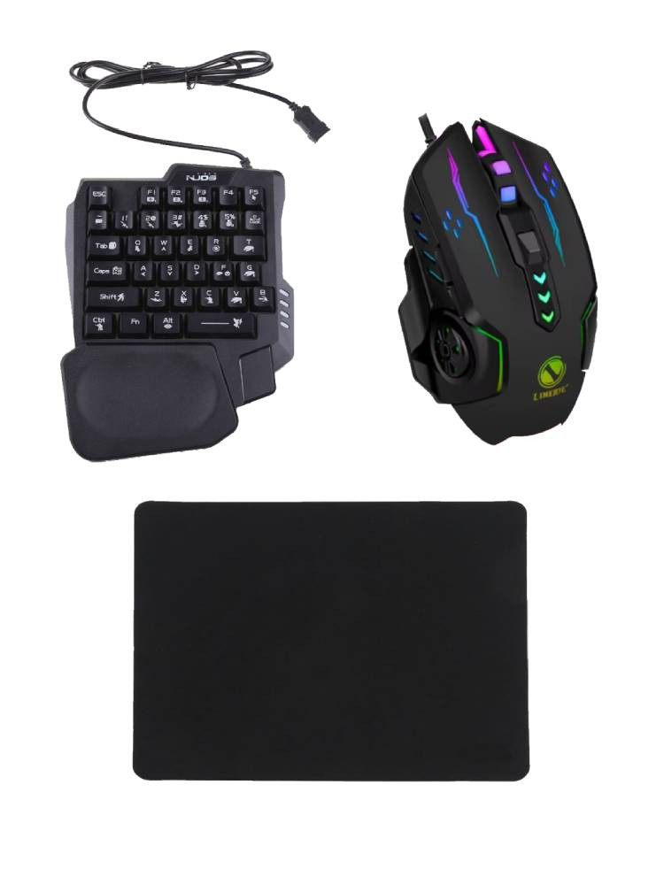 Профессиональный набор для геймеров, включающий одноручную клавиатуру с RGB-подсветкой, эргономичную игровую мышь с регулируемым DPI и текстурированный коврик для максимальной точности. Подходит для ПК и ноутбуков.