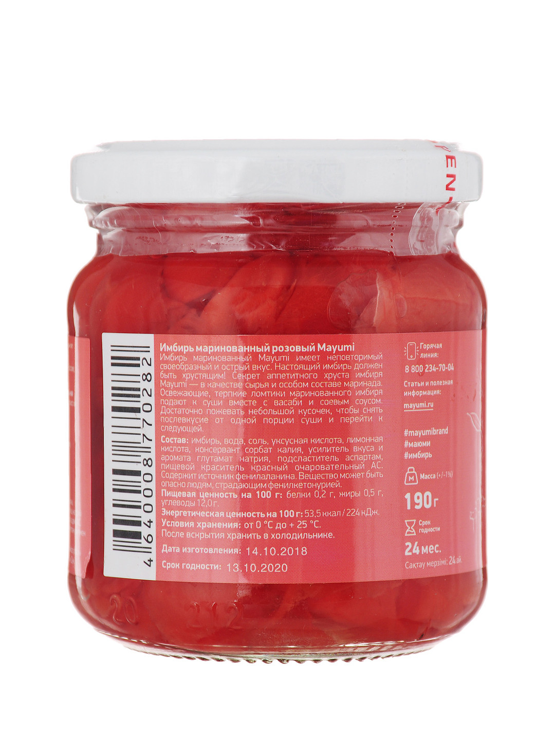 Состав: имбирь, уксус рисовый, сахар, соль, вода, натуральный краситель
