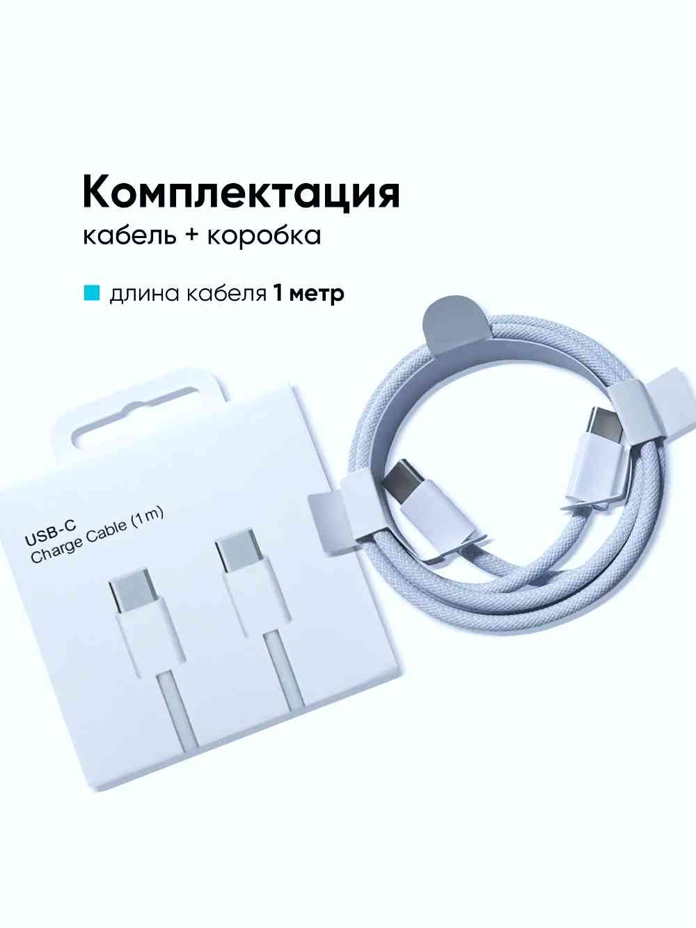 Зарядный кабель длиной 1 метр имеет плетеную конструкцию, предназначен для зарядки iPhone серии 15, iPad Pro и других цифровых устройств с разъёмом USB-C (Tape-C) и синхронизации их между собой. Метровая длина позволит с комфортом расположить девайсы во время зарядки или переноса файлов.