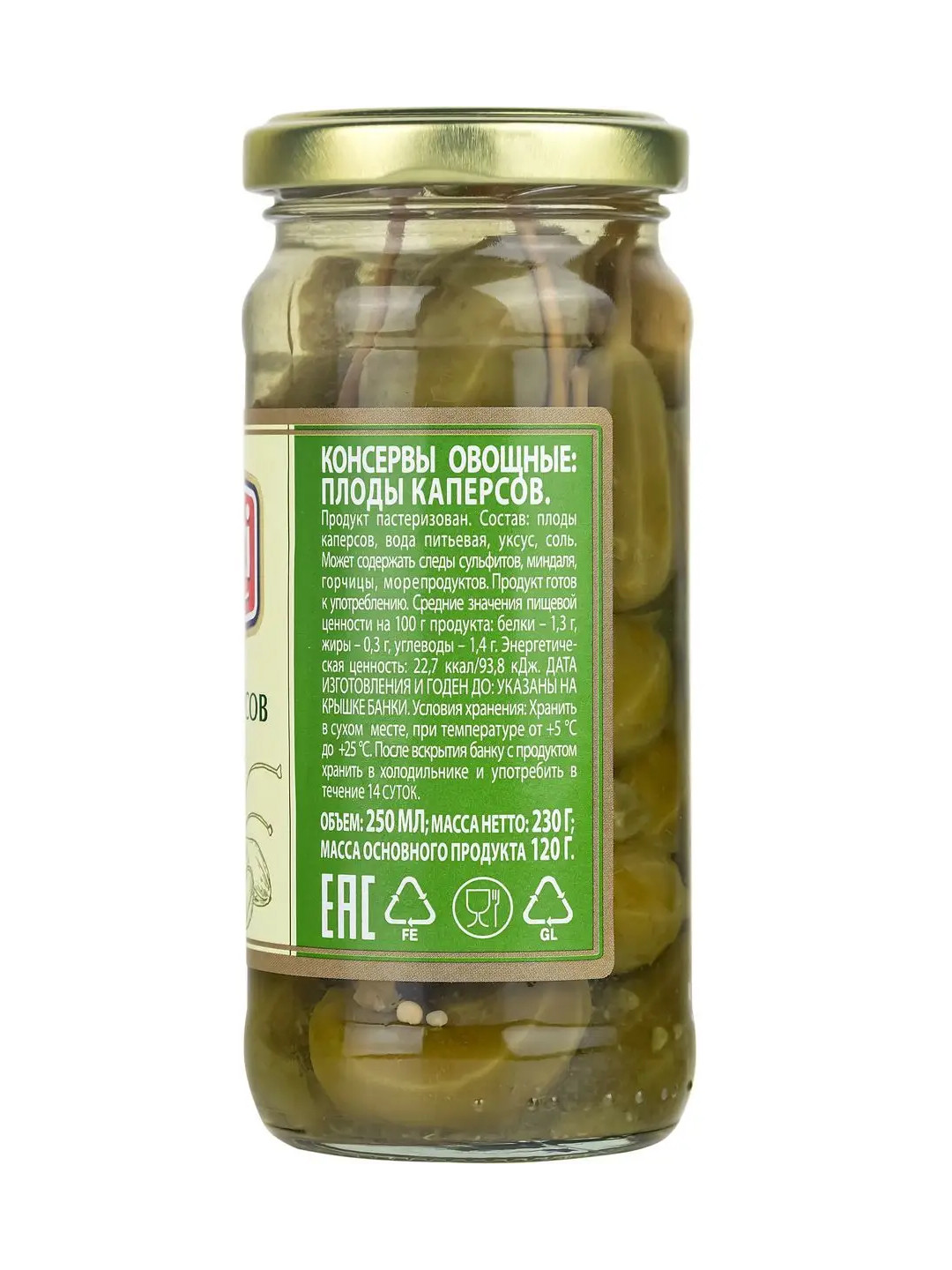 Консервированные каперсы в винном уксусе от итальянского производителя. Маринованные каперсы придадут особую пикантность и остроту рыбным и мясным блюдам, салатам и соусам, подходит в качестве самостоятельной закуски, а также подходит веганам (Vegan) и вегетарианцам.