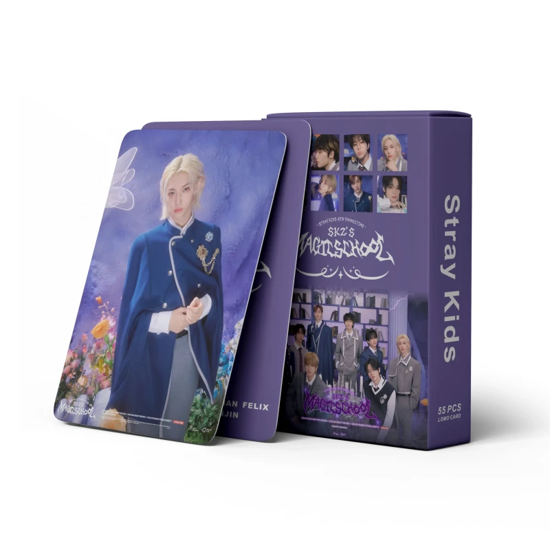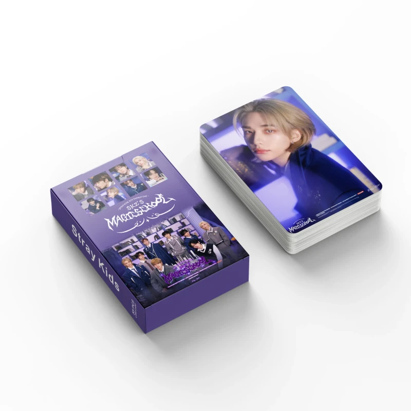Каждая карта украшена яркими и высококачественными фотографиями участников Stray Kids.