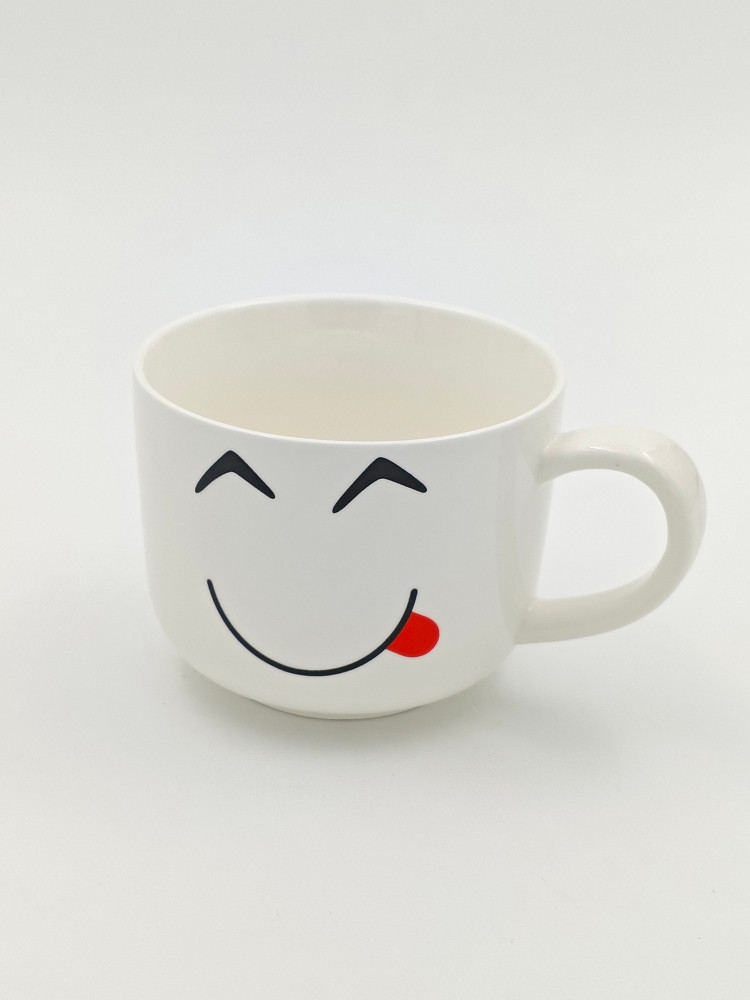 Этот белый керамический стакан с озорной улыбкой добавит веселья в любой напиток! Его минималистичный, но выразительный дизайн с нарисованными смеющимися глазами и высунутым язычком создаёт игривое настроение.