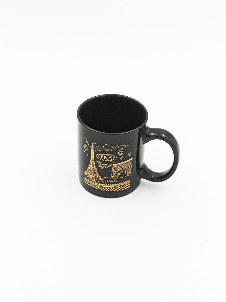 Стильная керамическая кружка с изысканным золотым принтом, отражающим атмосферу Парижа. Дизайн включает Эйфелеву башню, Триумфальную арку и музыкальные элементы, создавая утонченную эстетику. Черный глянцевый фон подчеркивает роскошный декор, а объем 330 мл делает ее удобной для повседневного использования. Отличный выбор для ценителей французской культуры и элегантного дизайна.