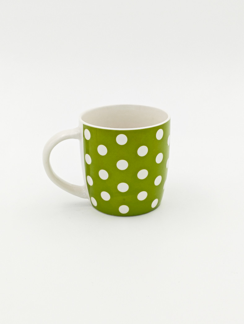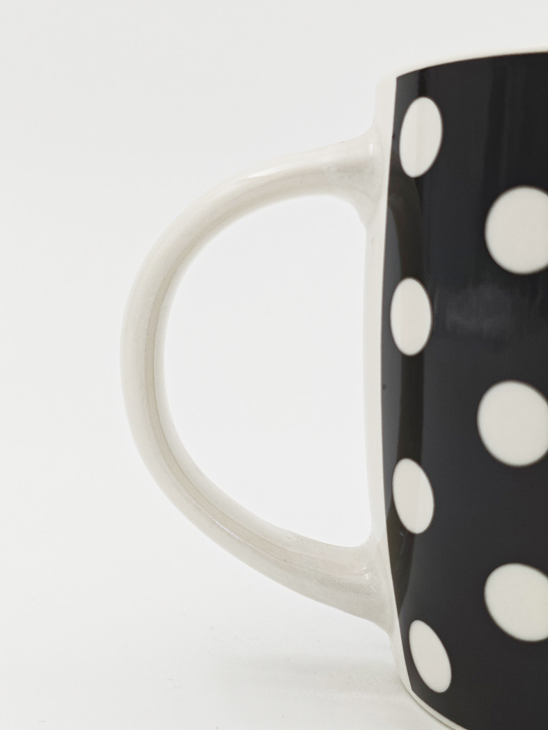Элегантная кружка с винтажным узором в горошек. Контрастный дизайн в сочетании с классической формой делает её стильным дополнением для вашей кухни или офиса. Внутренняя поверхность светлая, что подчёркивает глубину основного цвета. Удобная ручка обеспечивает комфортный хват, а прочная керамика сохраняет тепло напитка дольше.