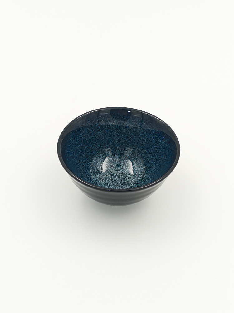 Эффектная пиала из качественной керамики с глубоким синим покрытием внутри, напоминающим звёздное ночное небо. Внешняя матовая поверхность чёрного цвета придает изделию элегантность и сдержанность. Пиала отлично подходит для подачи салатов, соусов, десертов, а также прекрасно дополнит сервировку в восточном или современном стиле.