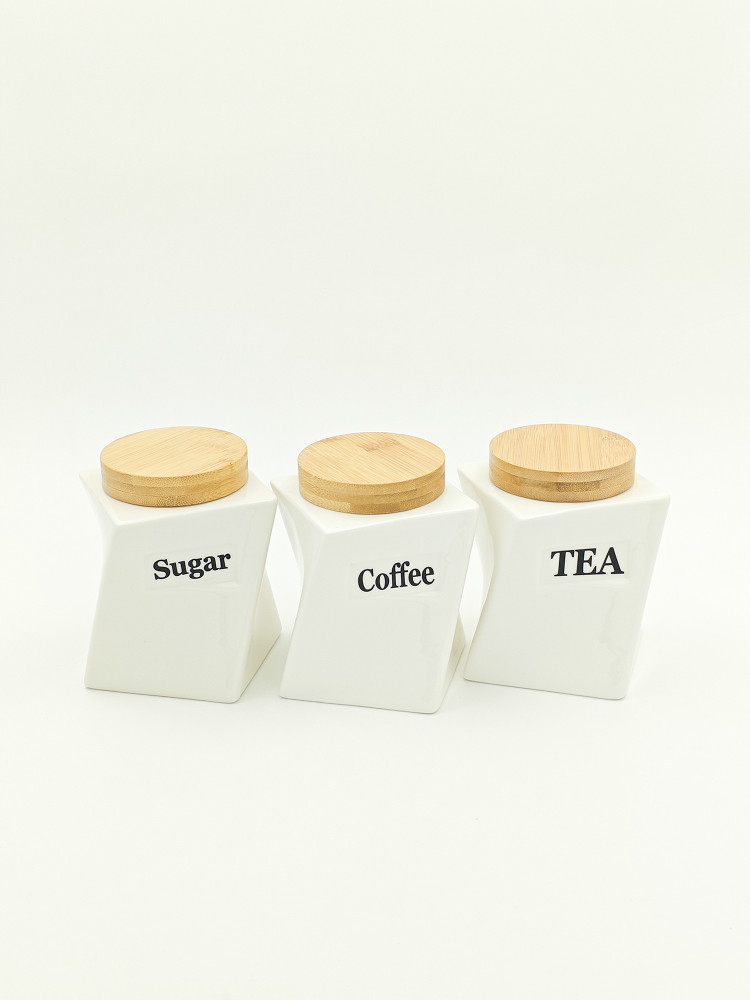 Элегантный набор для хранения чая, кофе и сахара станет стильным дополнением любой кухни. Современный дизайн в минималистичном стиле сочетается с натуральными материалами: белая керамическая основа дополняется крышками из натурального бамбука, которые обеспечивают герметичность и сохранение свежести продуктов. Набор поставляется с удобной деревянной подставкой, упрощающей организацию пространства.