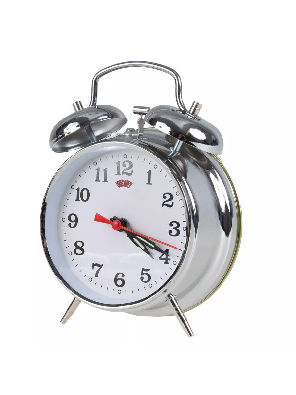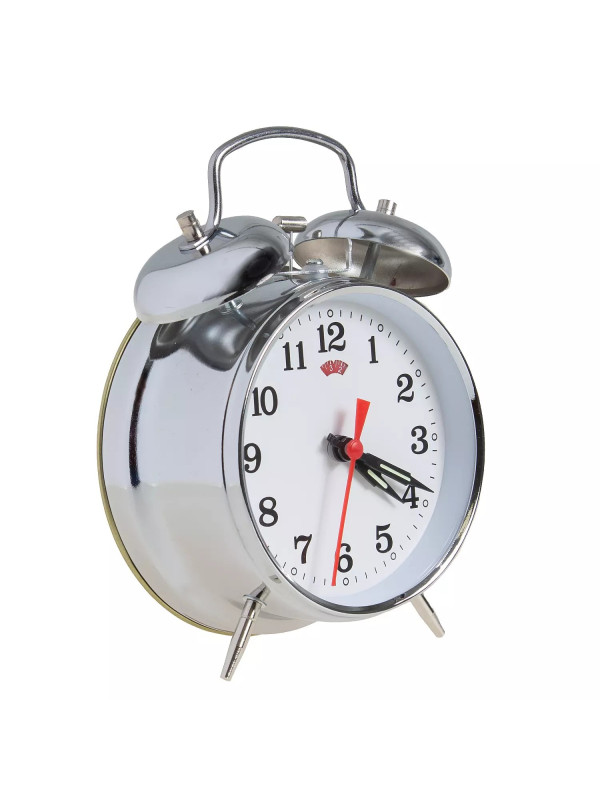 - Ретро-дизайн – хромированный металлический корпус, большие арабские цифры и классический двойной звонок создают винтажную эстетику.