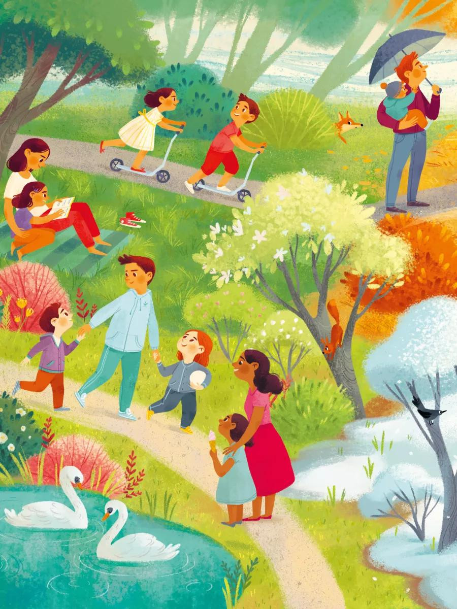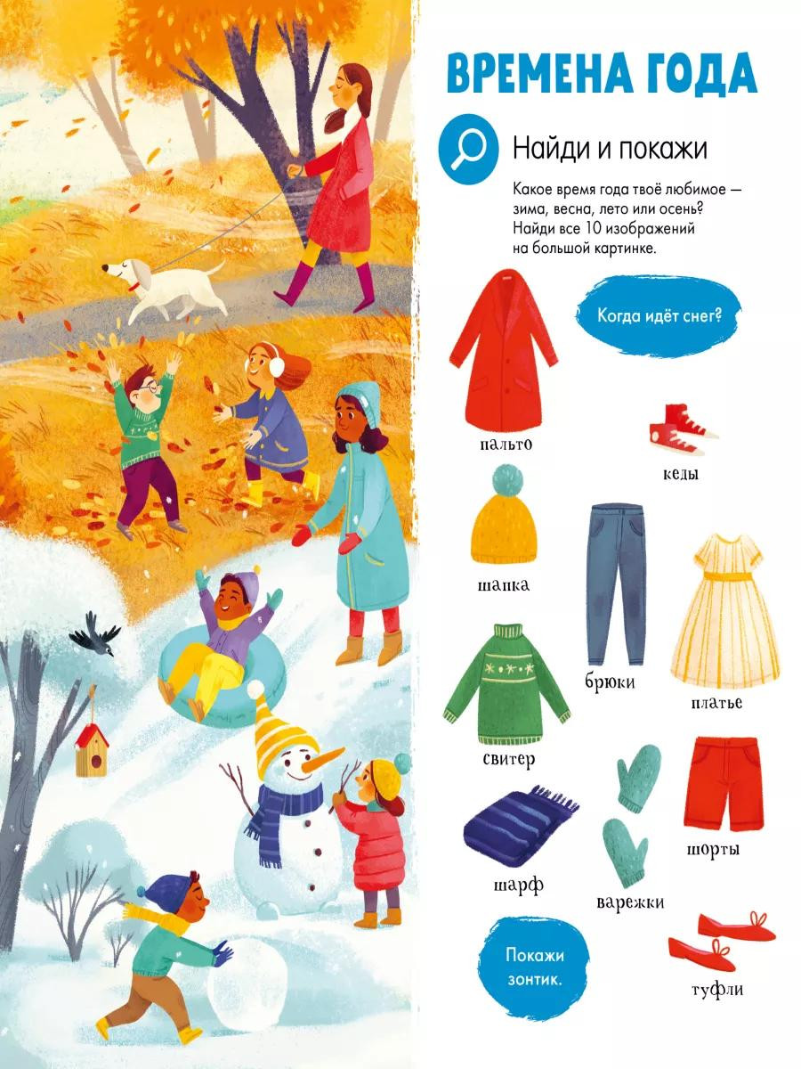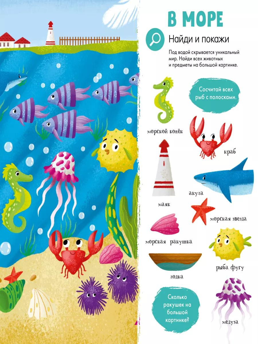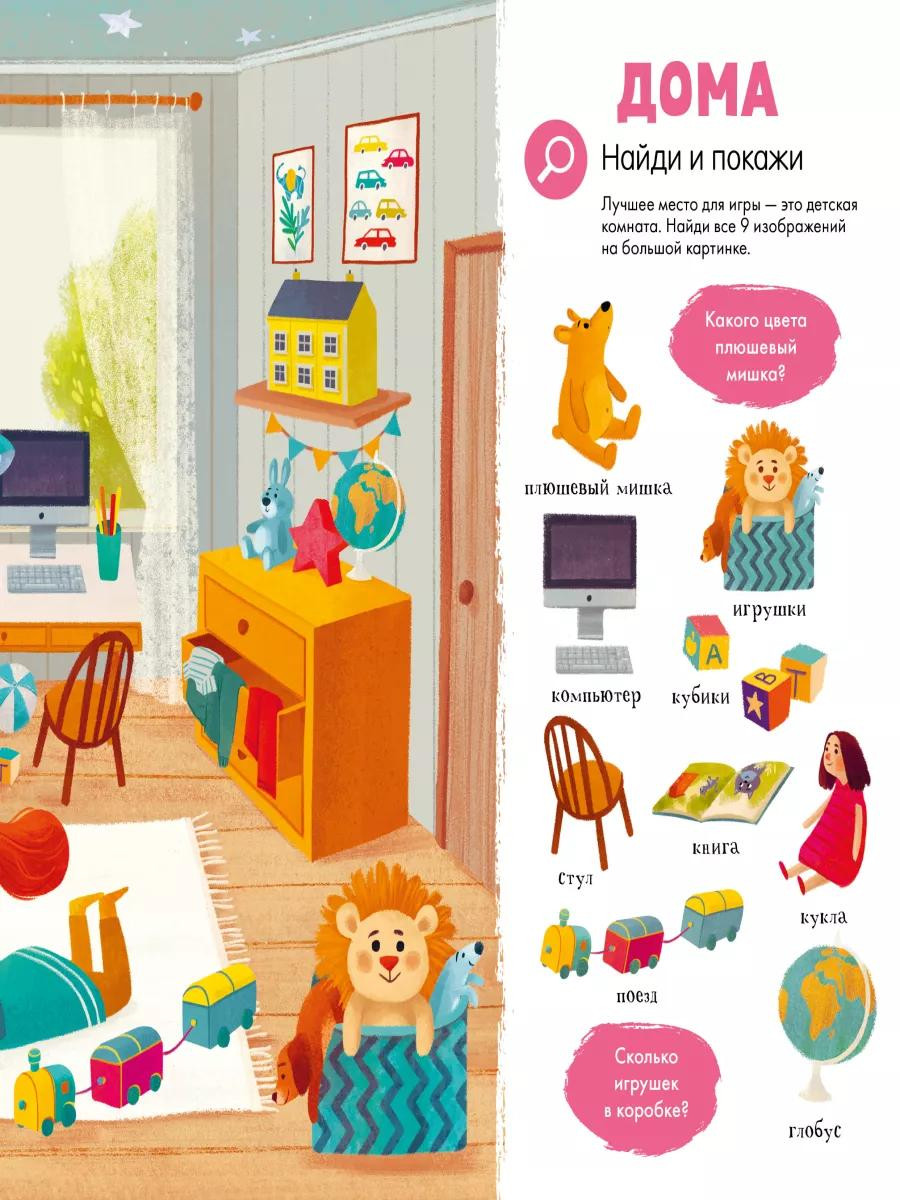 Вам предстоят увлекательные задания: найти все съедобные предметы красного цвета, обнаружить все оттенки зеленого, сосчитать на картинке всех детей в шлемах и многое другое. Удобный для маленьких ручек формат и неубиваемый твердый переплет сделают книгу одной из любимых на долгое время.
