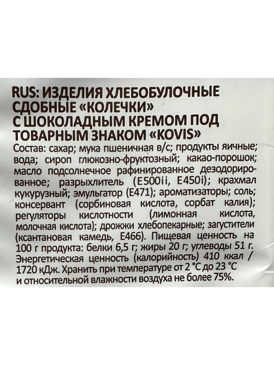 Мягкие и ароматные сдобные колечки с насыщенной шоколадной начинкой. Выпечены по оригинальному рецепту, идеально подойдут для перекуса, чаепития или в качестве сладкого десерта. Упаковка содержит 6 индивидуальных изделий.