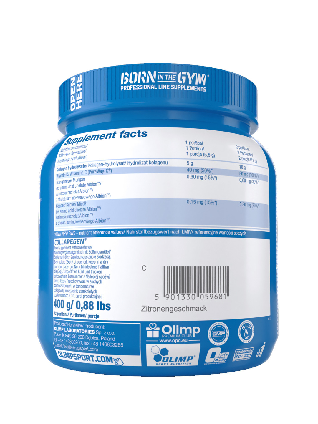 Позаботьтесь о своих суставах, костях и связках профессионально! Делайте ставки на Олимп Коллареген! Основным компонентом добавки является коллаген, который является основным белком, образующим соединительную ткань. Бренд использует в своем продукте высококачественный гидролизат коллагена - ингредиент, который не только чист, но и быстро усваивается организмом. Витамин С - аскорбиновая кислота, то есть популярный витамин С, широко воспринимается как один из основных ингредиентов, поддерживающих иммунитет. Витамин С является одним из необходимых факторов, обеспечивающих правильную выработку коллагена. Более того, сильный антиоксидантный потенциал этого ингредиента позволяет эффективно удалять свободные радикалы, ускоряющие процессы старения организма, тем самым усиливая регенеративные процессы. Использует инновационную форму PureWay - C. Степень усвоения этого типа витамина С дополнительно повышается за счет присутствия растительных восков. Это позволяет избежать чрезмерных потерь витамина С при пищеварении, что способствует более эффективному использованию его свойств в контексте опорно-двигательного аппарата. Эффекты и действие: В состав добавки добавлены марганец и медь, которые присутствуют в форме хелатов аминокислот Albion. Хелаты Albion гарантируют более полное и быстрое использование свойств обоих минералов. Марганец и медь играют важную роль в формировании нового хряща. Их присутствие в составе препарата является эффективным дополнением регенерирующего действия витамина С. 1. Дополнение ежедневного рациона оптимальными дозами коллагена, витамина С (PureWay-C) и минералов. 2. Натуральная поддержка суставов, сухожилий и связок. 3. Дополнительная поддержка опорно-двигательного аппарата при возрастающей нагрузке. Препарат рекомендуется людям, стремящимся восстановить работоспособность или поддерживать в хорошем состоянии соединительную ткань, участвующую в формировании опорно-двигательного аппарата (сухожилия, связки, суставные хрящи). Особенно рекомендуется для физически активных людей и людей с избыточным весом. Также можно применять пожилым людям, у которых наблюдается естественное снижение прочности хрящевой ткани. Рекомендуемая суточная доза: 1-2 порции в день между приемами пищи. 1 порцию (5,5 г порошка - = ½ мерного стакана = 1 столовая ложка) следует растворить в 100 мл воды. Состав на порцию 5.5 г: Коллаген - 5 г, Вит.С (PureWay-C) - 40 мг, Марганец (из аминокислотного хелата Albion) - 0.30 мг, Медь (из аминокислотного хелата Albion) - 0.15 мг. Ингредиентный состав: гидролизат коллагена, регуляторы кислотности - яблочная кислота, лимонная кислота; мальтодекстрин, ароматизаторы, микрокапсулированная L-аскорбиновая кислота (PureWay-C) - вит.С, подсластители - сукралоза, цикламаты; диглицинат марганца (аминокислотный хелат марганца Albion), диглицинат меди (аминокислотный хелат меди Albion), красители. Сеть магазинов для здоровья, спорта и красоты "Атлетик Фуд".