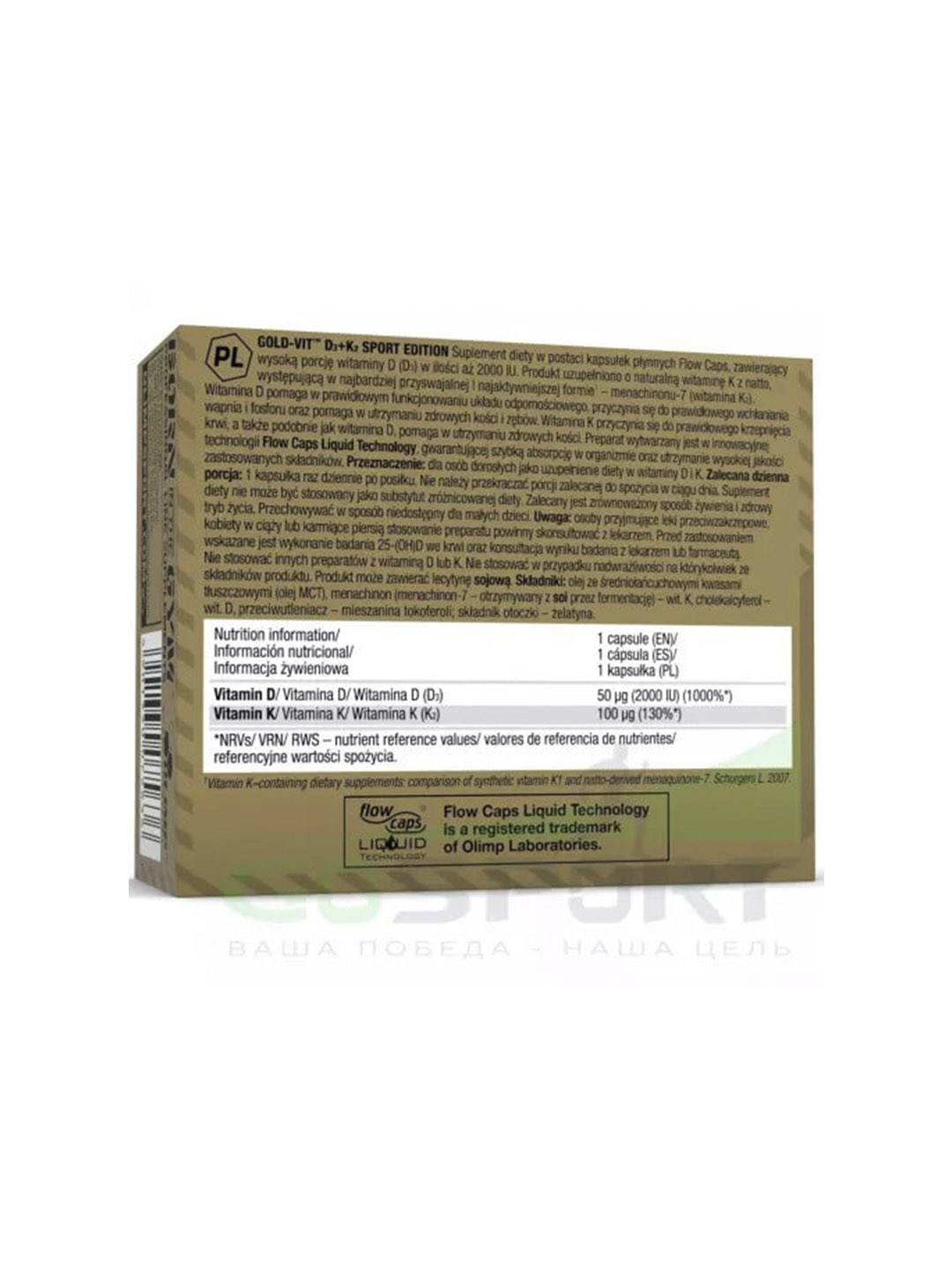 Комплекс витаминов D3 (2000 МЕ) и K2 MK-7 (100 мкг) для поддержки костей, суставов и сердечно-сосудистой системы. Разработан с использованием Flow Caps™ технологии для лучшего усвоения.