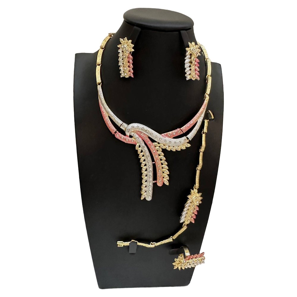 Комплект из колье, серег, браслета и кольца из смешанного металла. «Кисти»