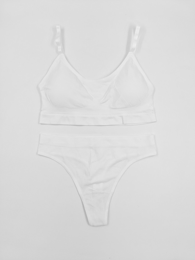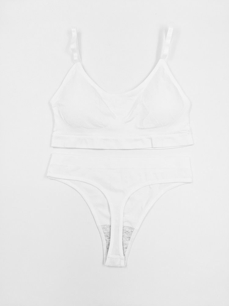 Удобный и стильный комплект нижнего белья белого цвета, идеально подходящий для повседневной носки или особых случаев. В комплект входит мягкий, бесшовный бюстгальтер с регулируемыми бретелями для индивидуальной подгонки и соответствующие трусики-стринги для гладкого и комфортного силуэта. Один размер, подходящий для размеров от S до XL.