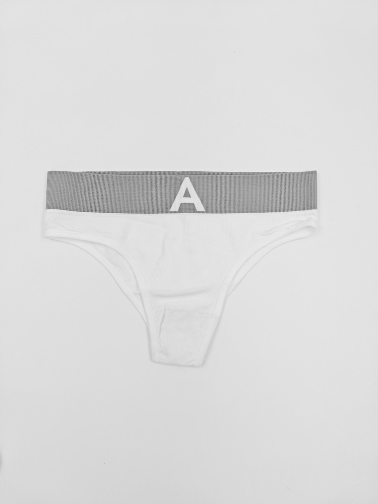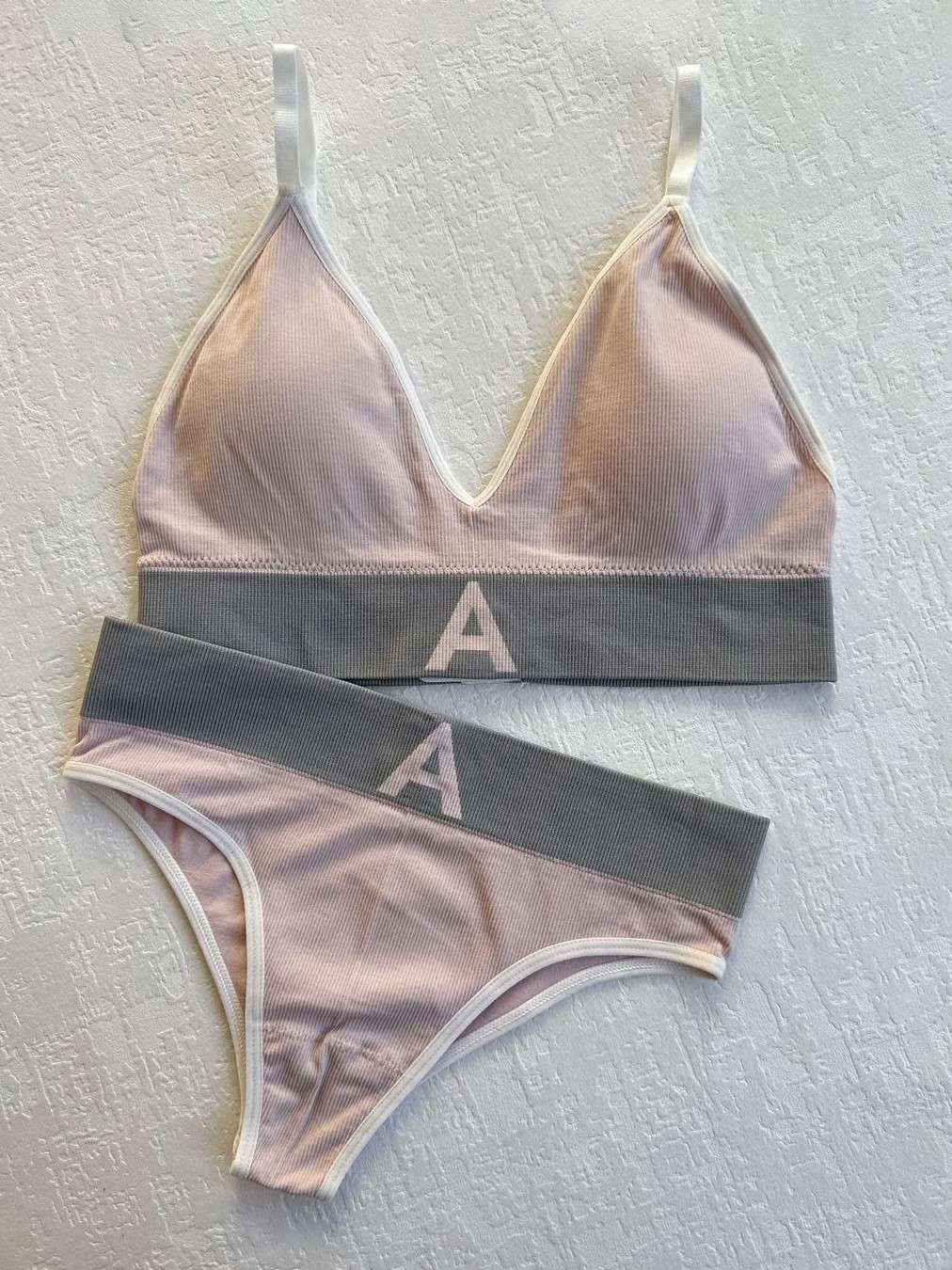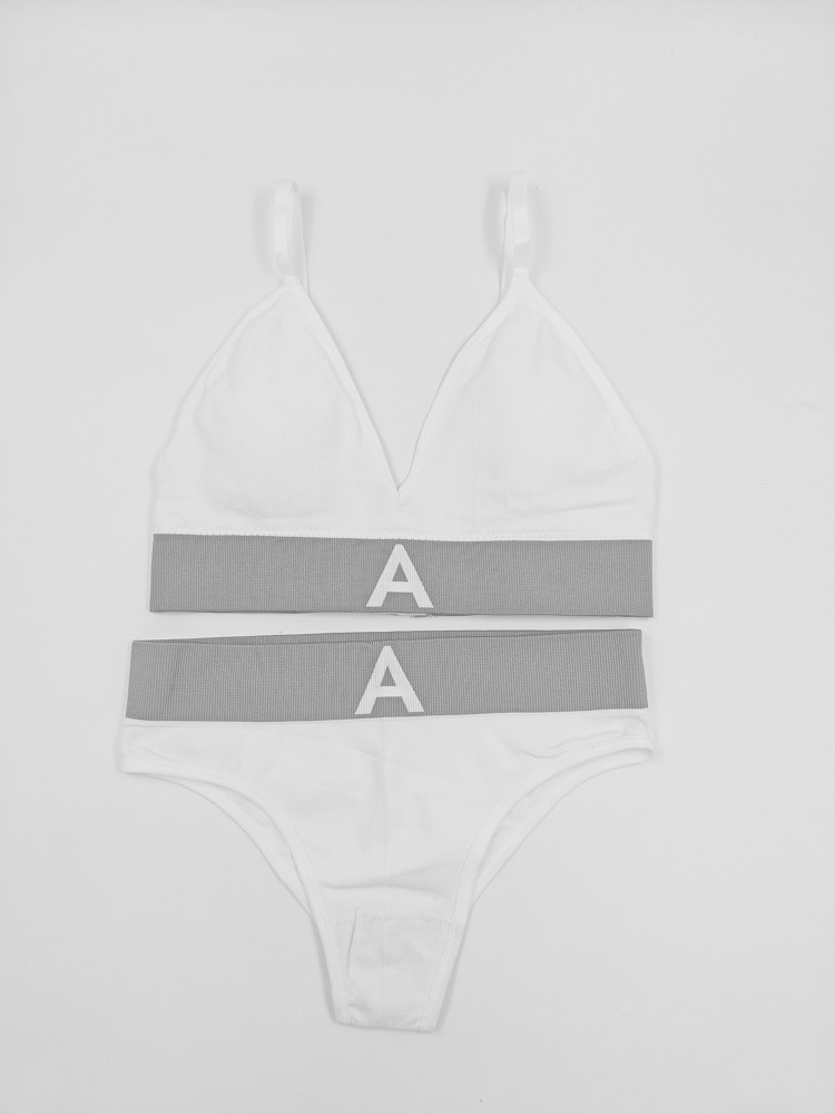 Описание товара: Этот комплект нижнего белья включает топ с регулируемыми бретелями и трусики с удобной резинкой, идеально подходящие для ежедневного комфорта. Простой, но стильный дизайн с серой полосой и буквенным акцентом "A" на поясе придает белью элегантный и современный вид. Изготовлен из мягкого и эластичного материала, который гарантирует удобство в течение всего дня.