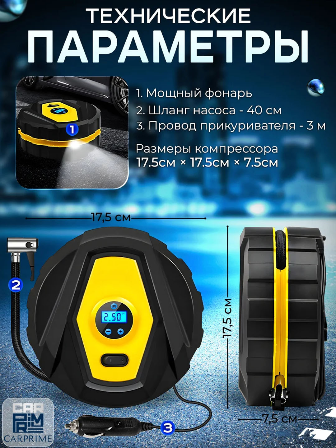 - Питание: от автомобильной сети 12В